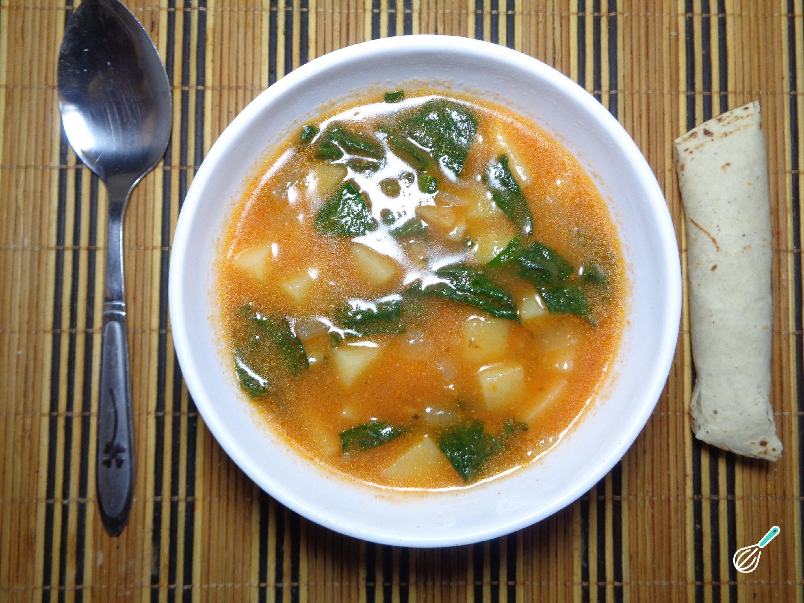 Quando a preparação estiver pronta, retire a panela do fogo e sirva a sopa de batata com espinafre bem quente, acompanhada por umas deliciosas tortilhas de milho!