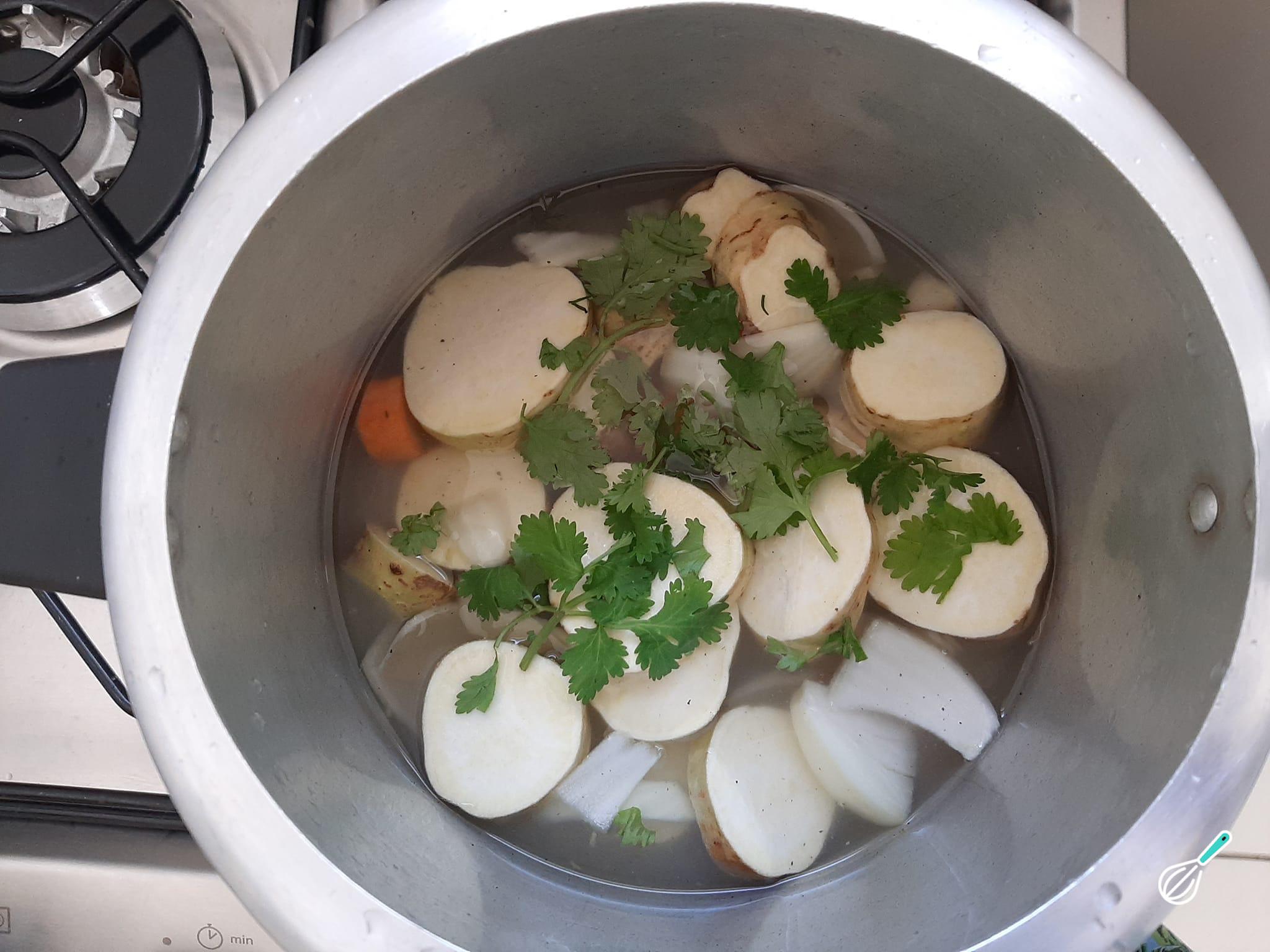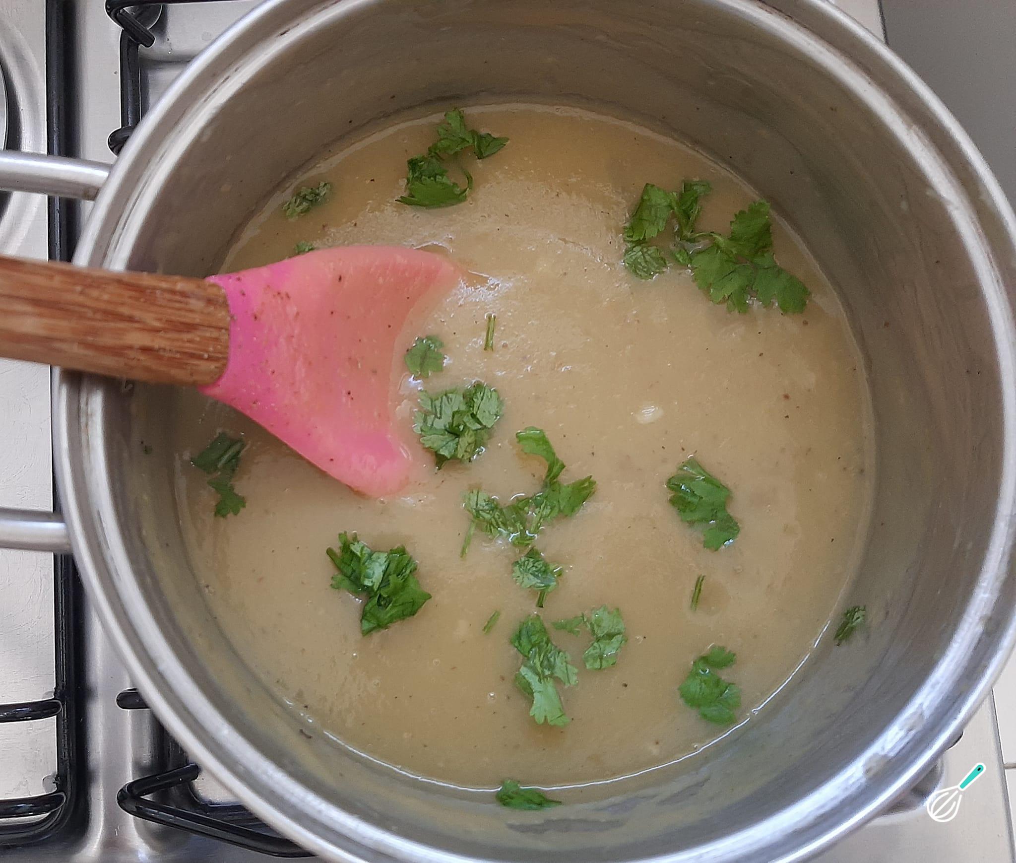 Desligue o fogo e acrescente mais cheiro verde ou coentro e misture novamente.