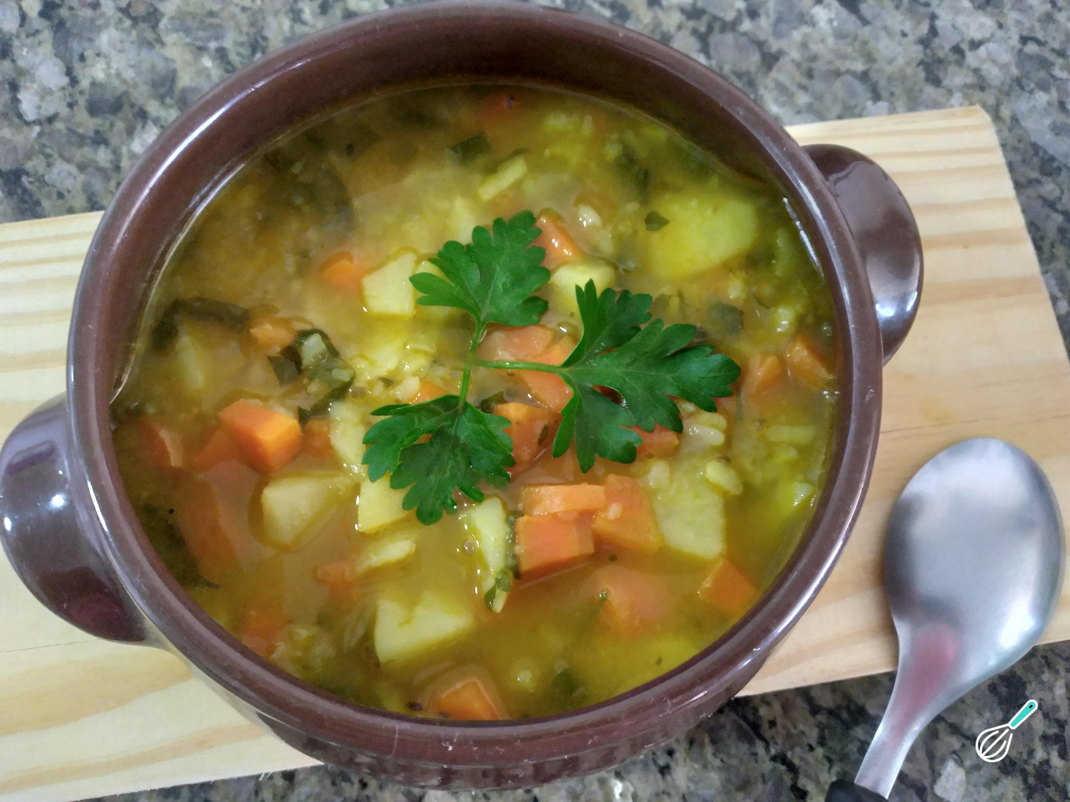 Depois de cozidos os legumes, sirva a sopa quente. Deixe com caldo, para ficar mais saborosa.