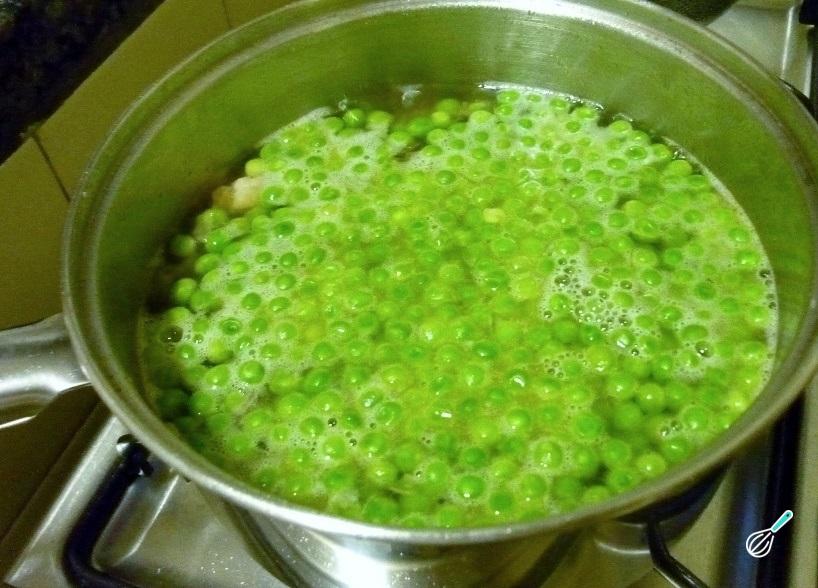 O primeiro passo para preparar sua deliciosa sopa de ervilha é cozinhar as ervilhas em uma panela (de preferência de pressão) com água e sal até que fiquem bem macias (30-40 minutos).