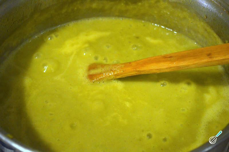 Assim que estiverem prontas, triture todo o conteúdo da panela com um mixer ou na liquidificadora, até obter um creme. Reserve.