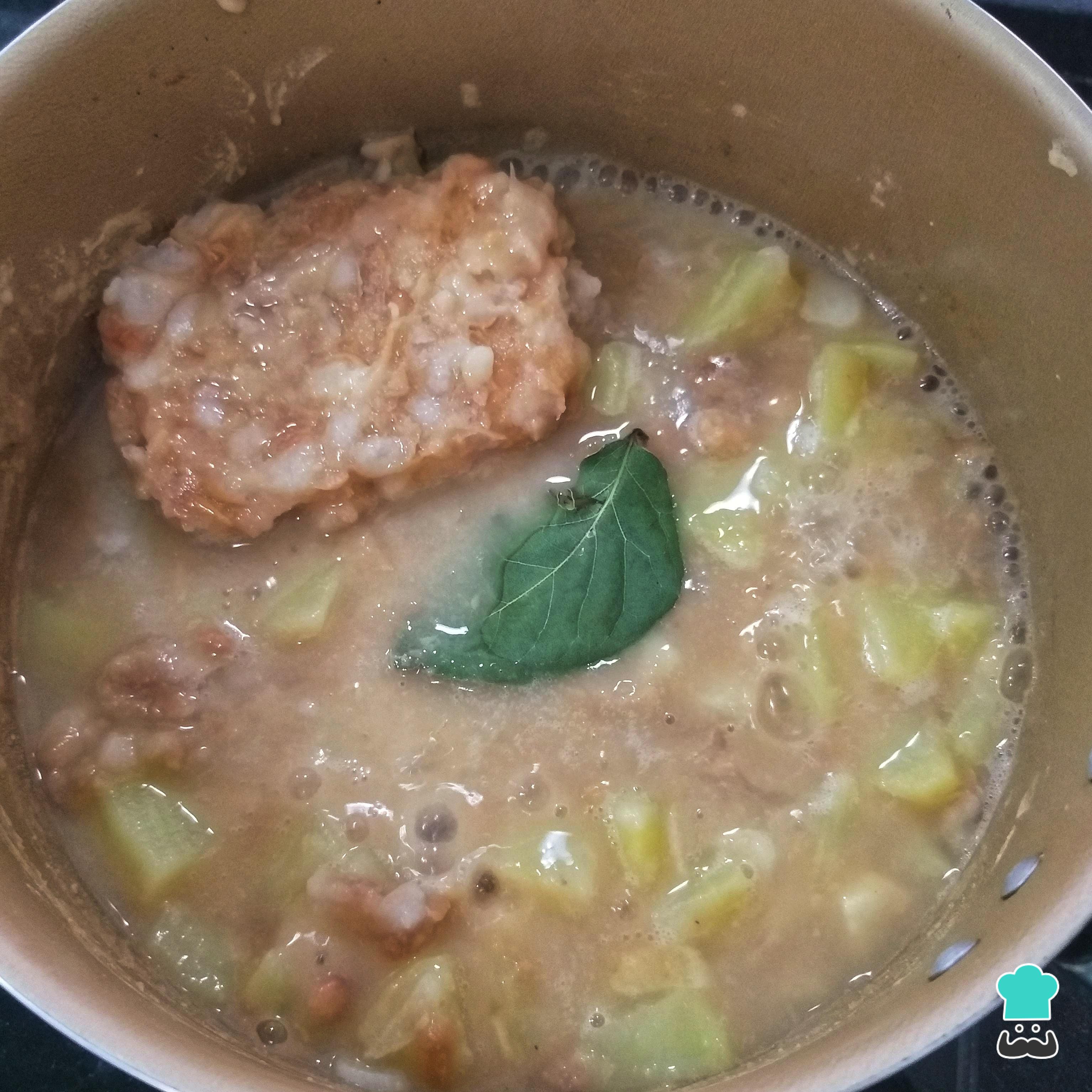 Acrescente a batata cozida, o feijão, o louro e o sal na panela com o óleo e os alhos. Aumente o fogo para médio e mexa até ferver.