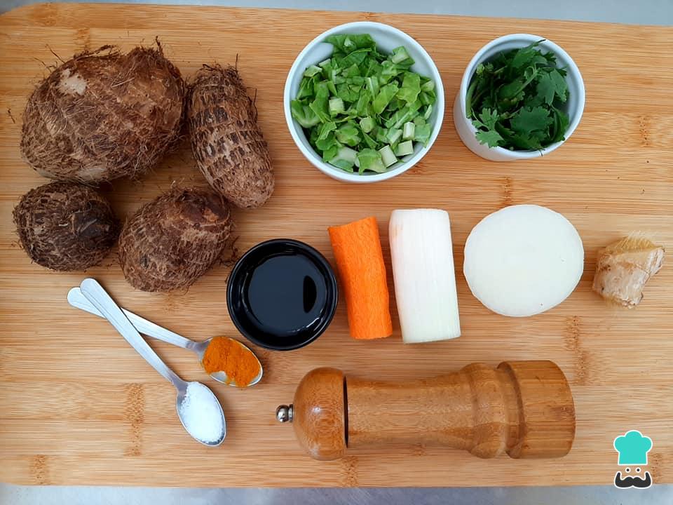 Nesta sopa teremos o inhame como protagonista mas, além desse ingrediente tão valioso, teremos a cenoura (fonte de sais minerais e de diversas vitaminas), o alho poró (que também auxilia na imunidade), a couve (hortaliça rica em fibras), o gengibre (que contem propriedades anti-inflamatórias e antioxidantes) e o açafrão (também conhecido como cúrcuma, tem ação anti-inflamatória e auxilia na digestão).