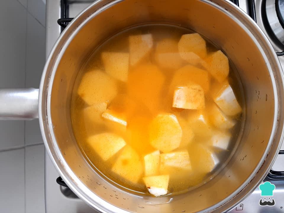 Cozinhe o inhame em água, sal e açafrão até que ele fique bem macio.