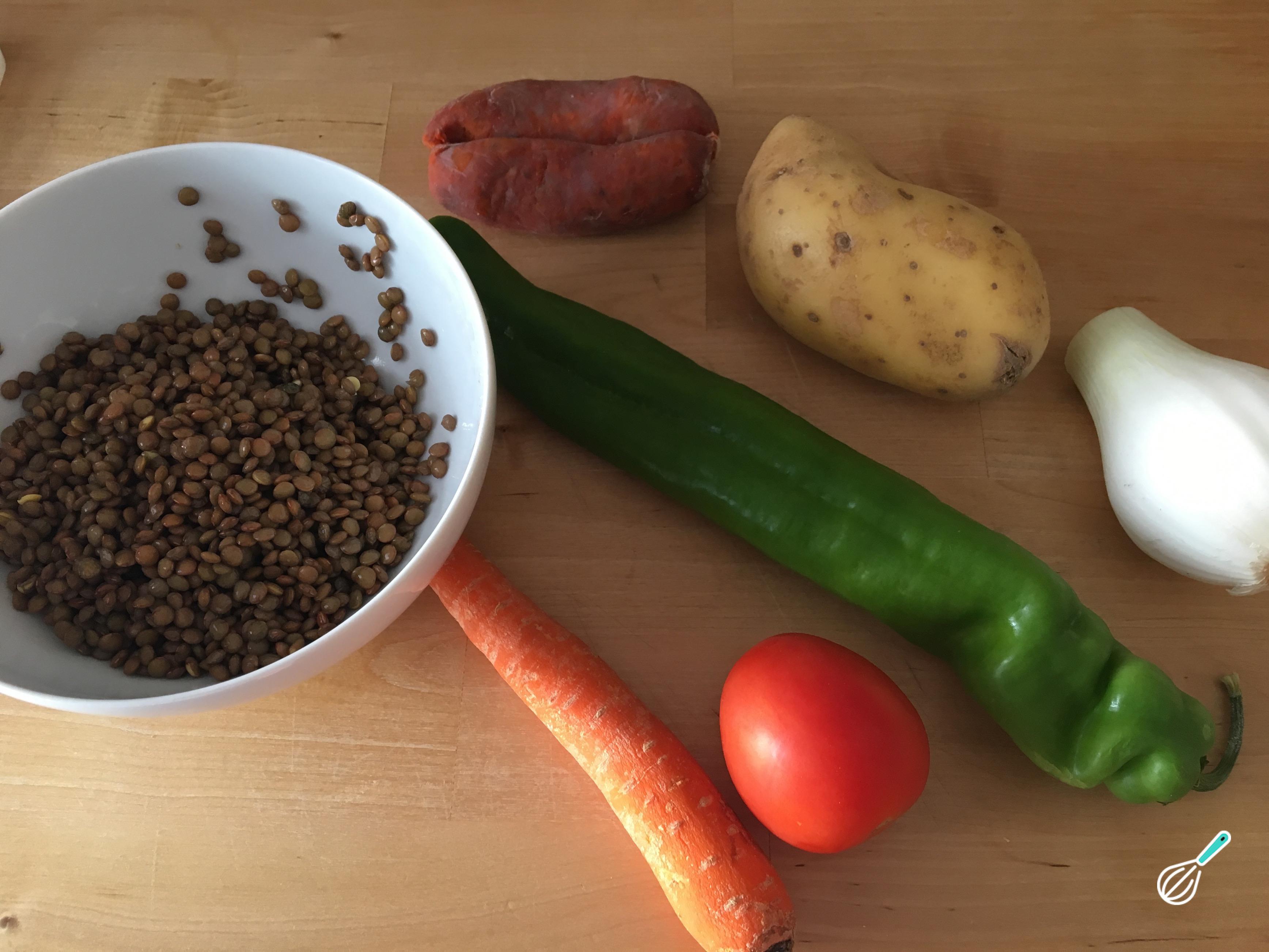 Para preparar essa receita de sopa de lentilha comece por reunir os ingredientes.