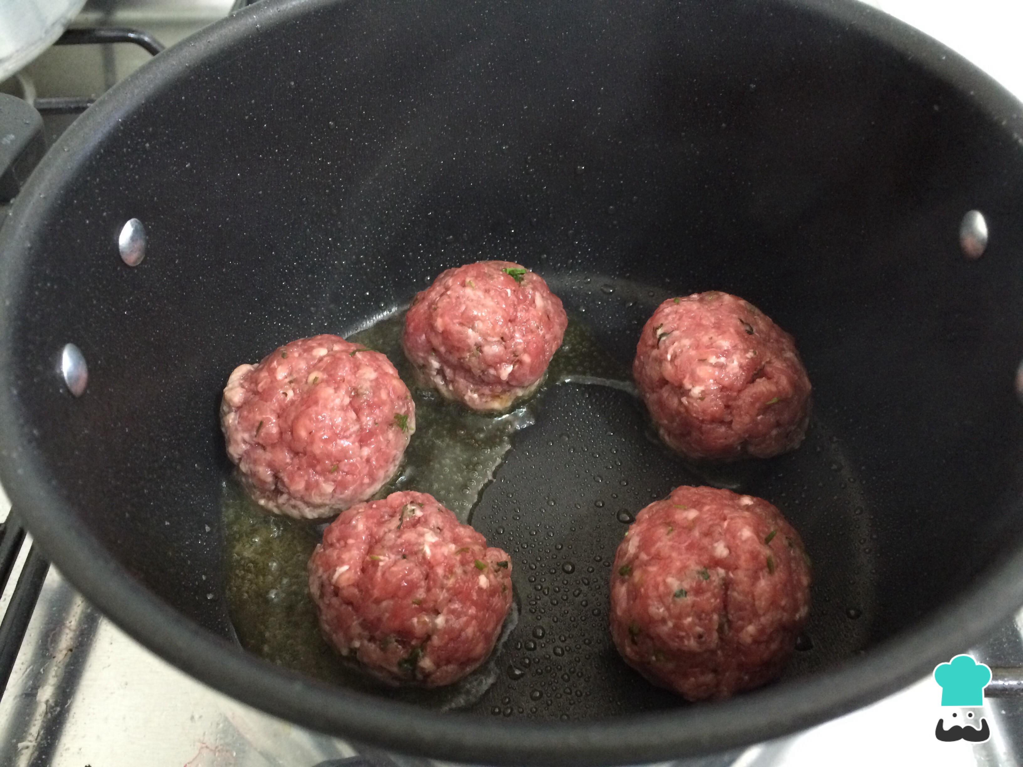 Modele bolinhas do mesmo tamanho e frite em uma panela ou frigideira com óleo. Retire as almôndegas caseiras quando estiverem douradas de todos os lados.