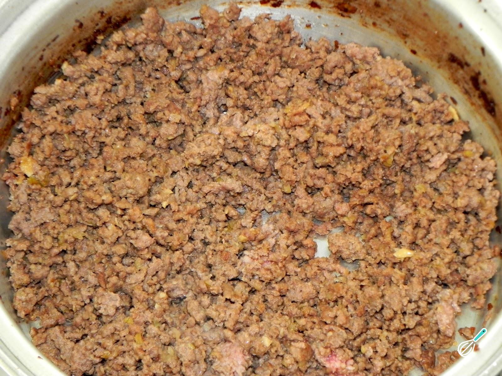 Para preparar sopa de mandioca com carne moída, comece temperando a carne com cebola, alho amassado e pimenta de cheiro. Leve à panela com um pouco de azeite de oliva e deixe refogar bem.