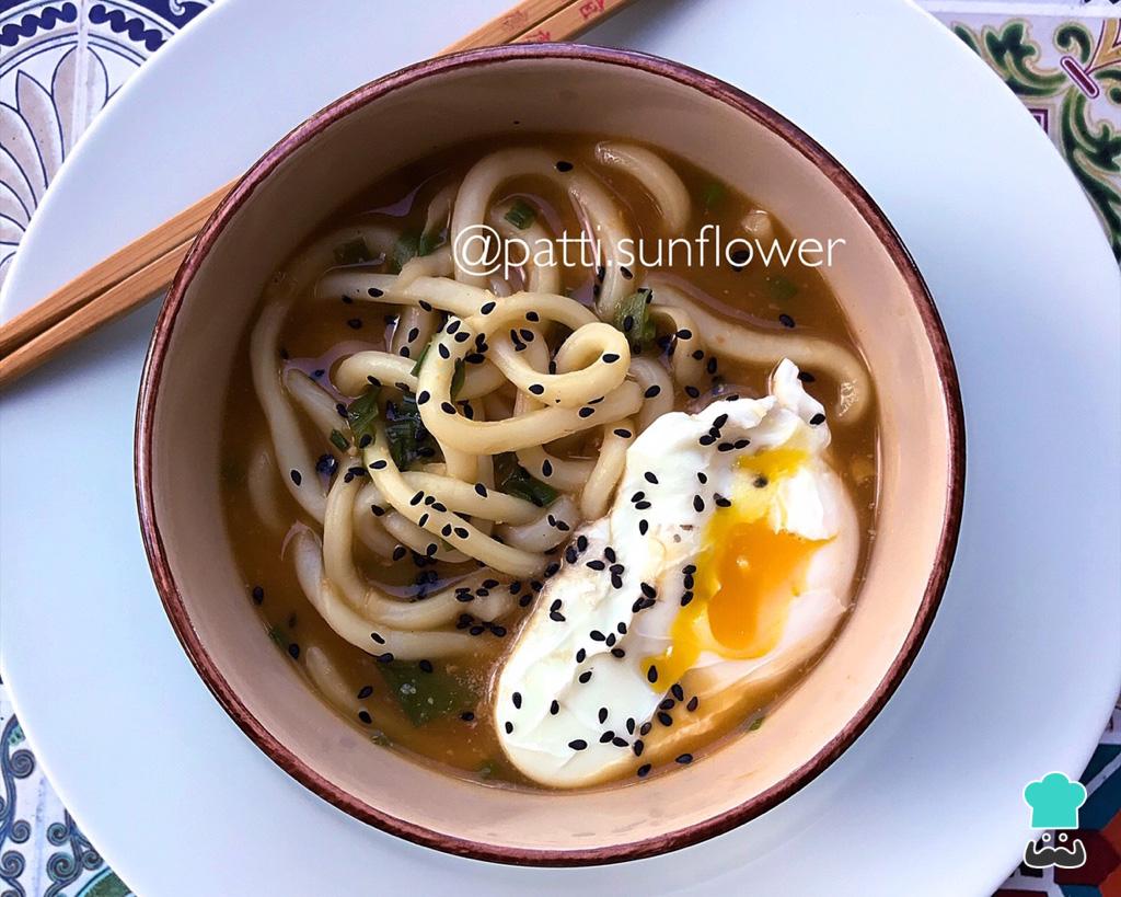 Retire o ovo com uma escumadeira e coloque sobre a sopa de miso com o udon já no prato. Se quiser polvilhe sementes de gergelim e está prontinha! Já pode aquecer seu coraçãozinho com essa delícia. Experimente e diga nos comentários o que você achou.
