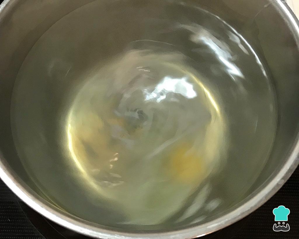 Numa panela bem funda coloque bastante água para ferver. Assim que ferver adicione 1 colher de sopa de vinagre e baixe o fogo para médio. Com a ajuda de uma colher faça um redemoinho e no meio do redemoinho coloque o ovo. Deixe cozinhar por 2,5 minutos para conseguir um ovo pochê no ponto.