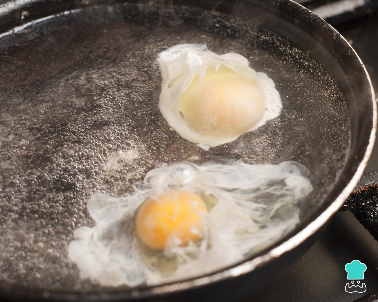 Para fazer os ovos escalfados ferva água numa panela e acrescente um pouco de vinagre (1-2 colheres de sopa). Enquanto mexe a água em forna de redemoinho coloque um ovo descascado e deixe por 3 minutos para conseguir uma gema crua ou 5-6 minutos para ovo bem passado. Faça isso com os restantes ovos, um de cada vez, para não grudarem uns nos outros.
