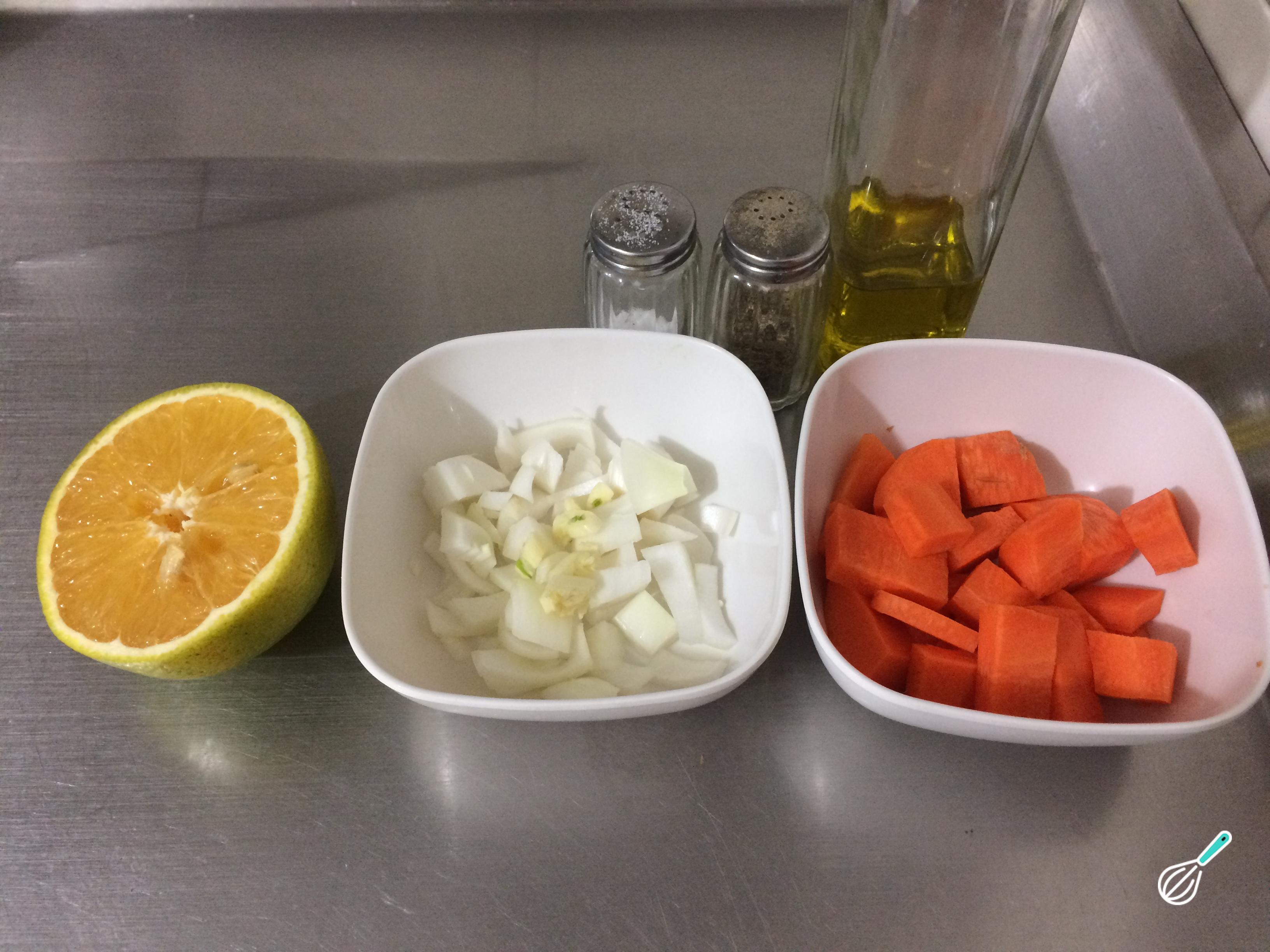 Para fazer a sopa fria de laranja e cenoura comece por reunir os ingredientes necessários.