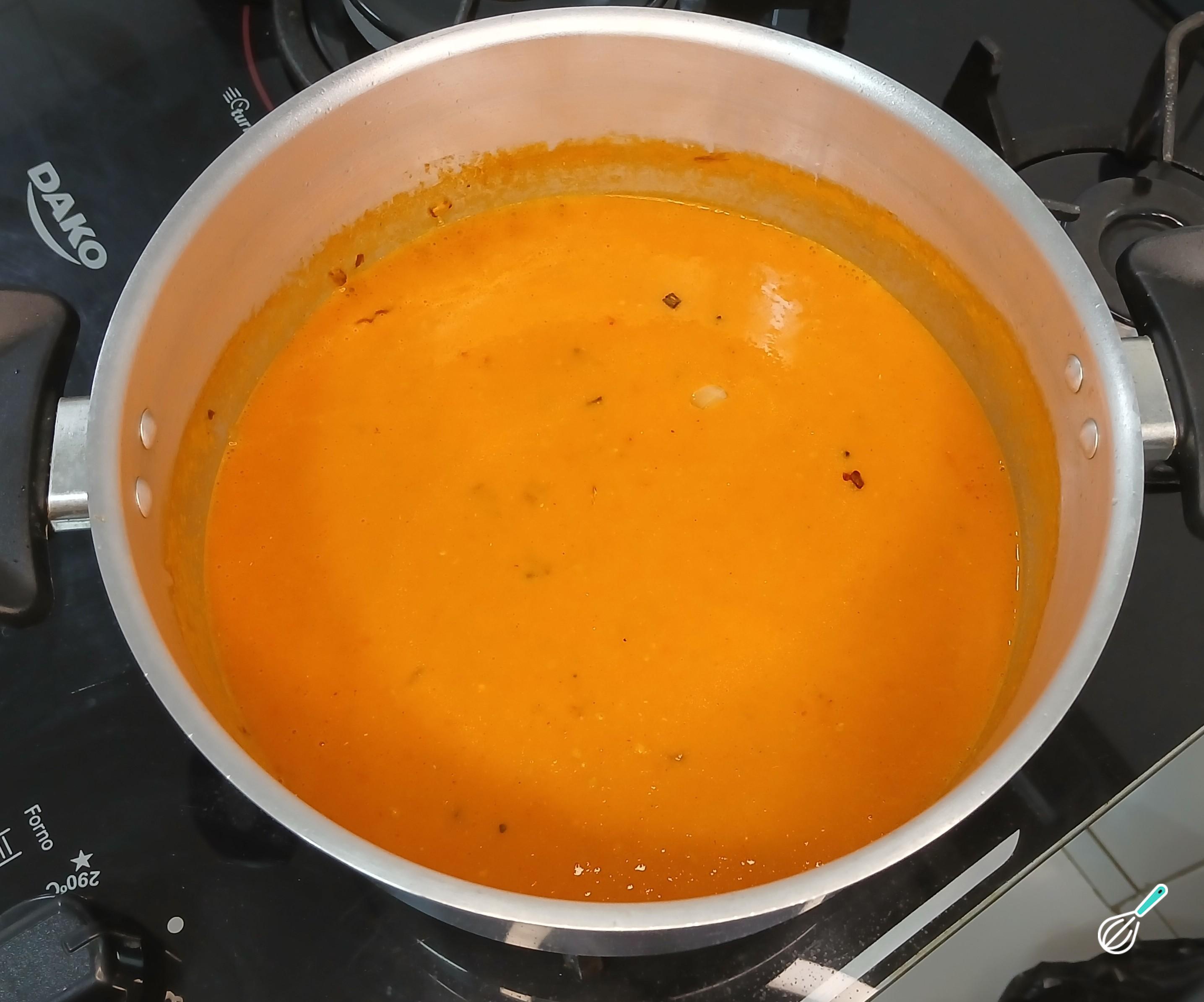 Depois disso, transfira o conteúdo do liquidificador para uma panela grande e em fogo baixo deixe que cozinhe até reduzir. Mexa para não grudar ao fundo e assim que estiver reduzido desligue. Prove e se necessário acerte a acidez com mais açúcar, acerte sal e pimenta se necessário.