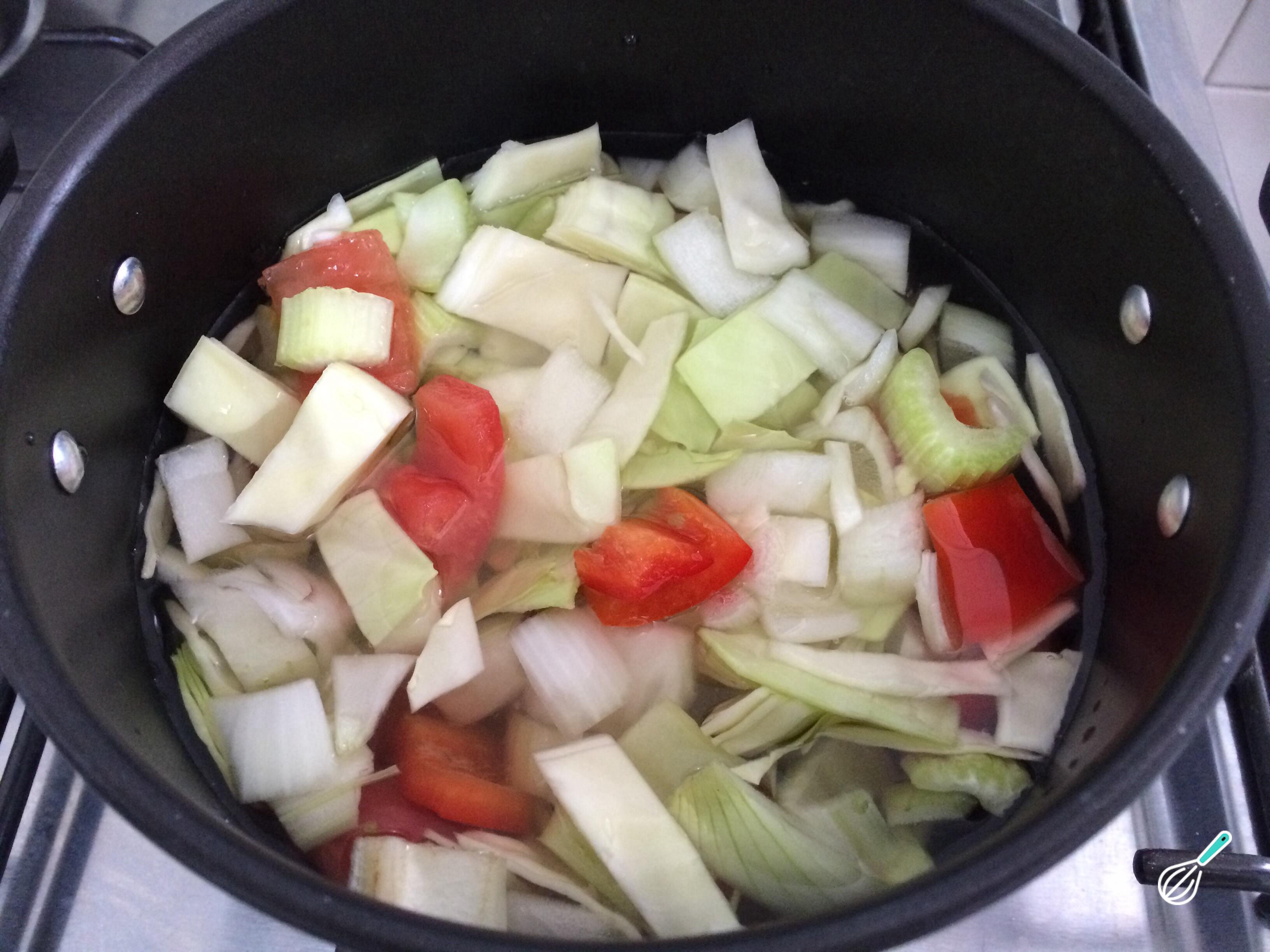 Coloque os legumes em uma panela e acrescente o dobro de água.