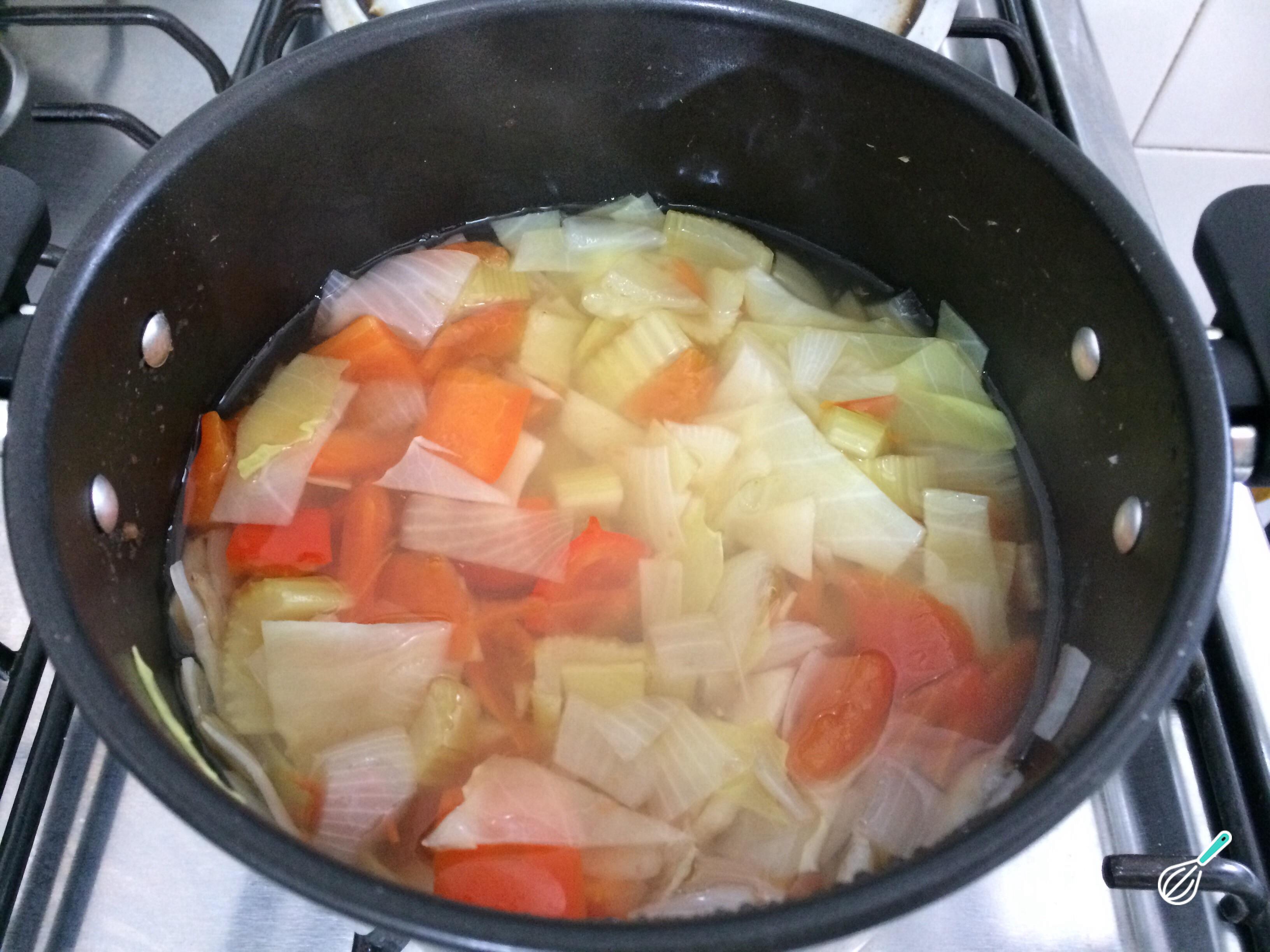 Cozinhe esta sopa saudável em fogo baixo e tampada, por 25 minutos. No final retifique o sabor com sal e pimenta.