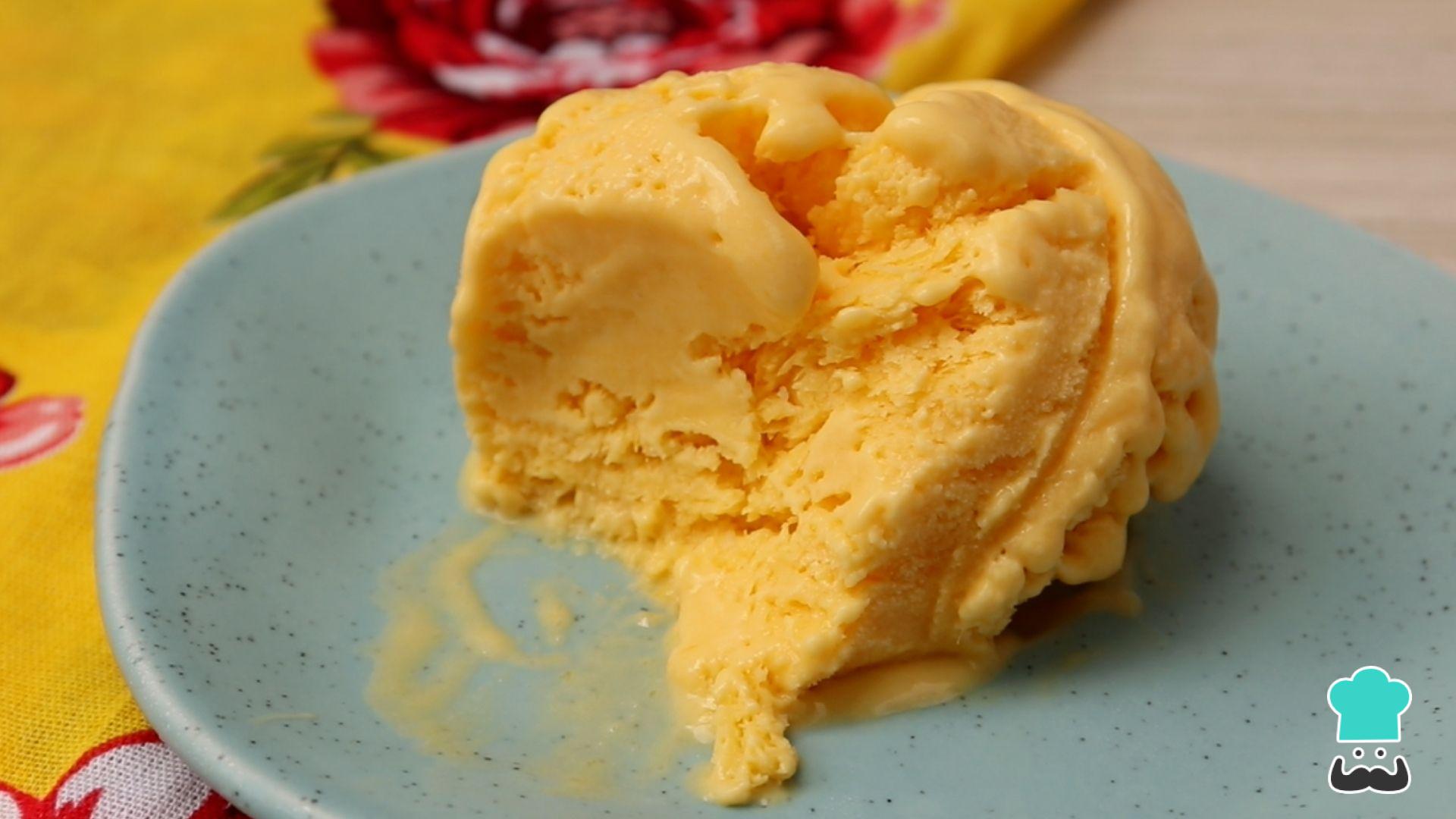 Pra fazer esse delicioso sorvete caseiro você só precisa de 3 ingredientes: manga, leite condensado e creme de leite fresco.