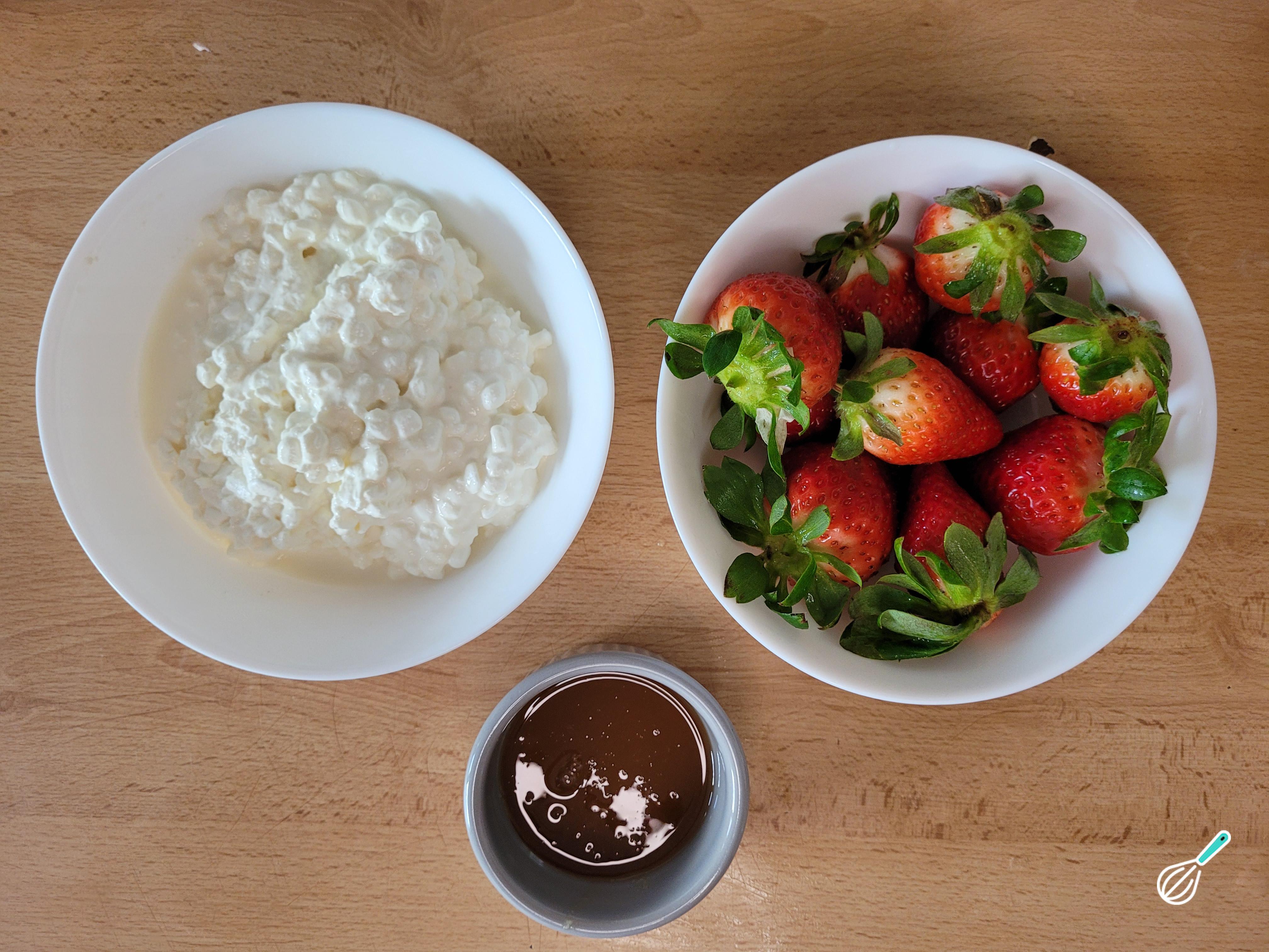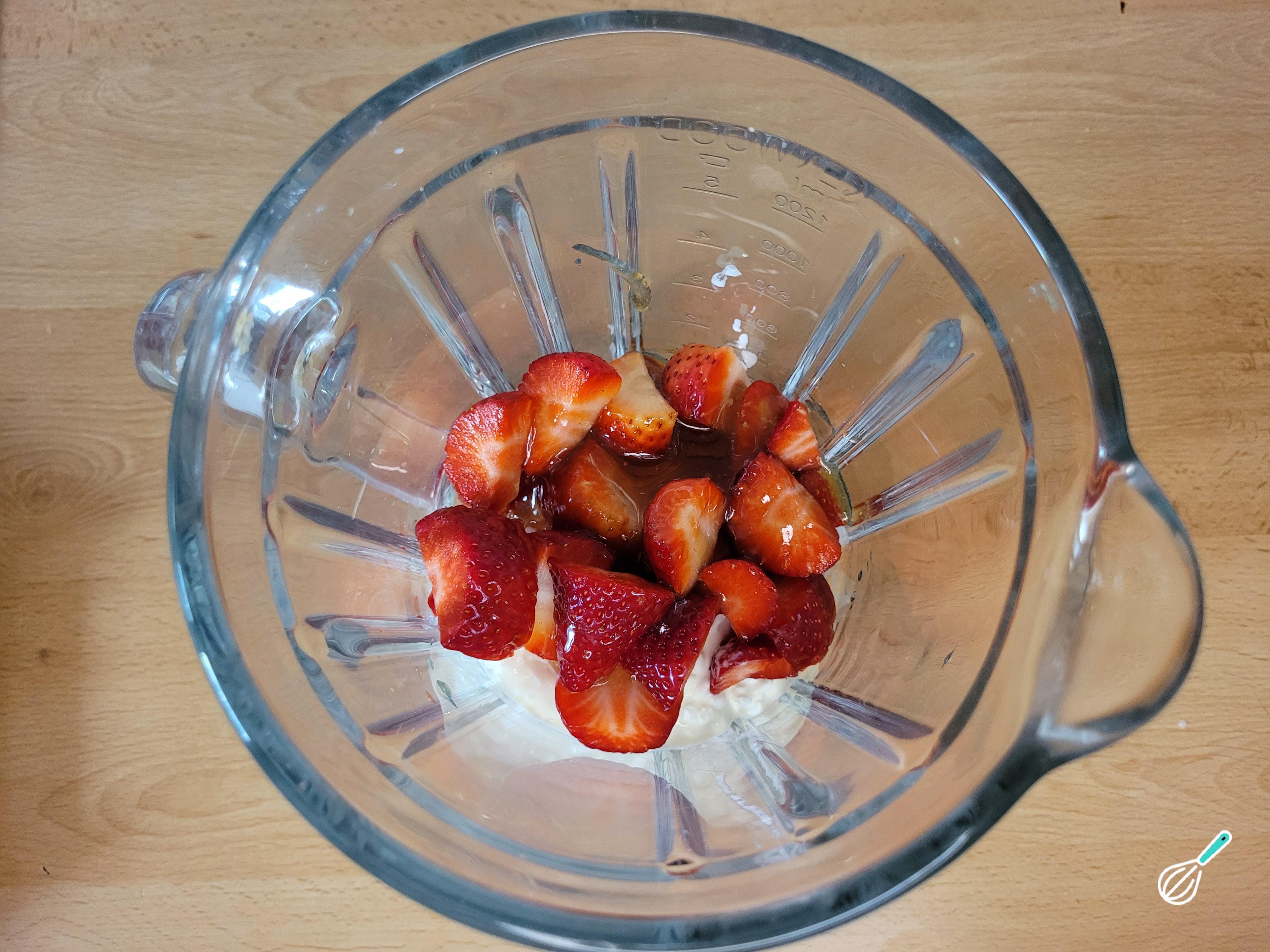 Coloque os morangos, o queijo cottage e o mel em um liquidificador.