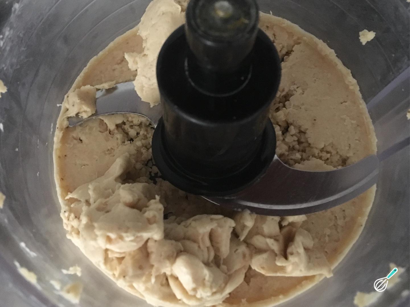 Coloque as bananas congeladas no liquidificador ou processador com a pasta de amendoim.