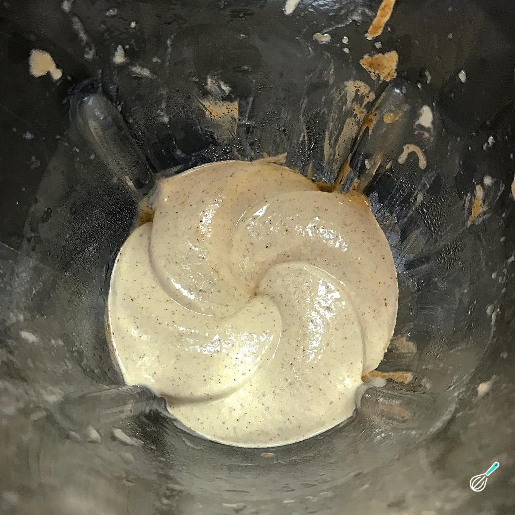 Adicione a manteiga de amêndoas e bata até tudo ficar bem misturadinho.
