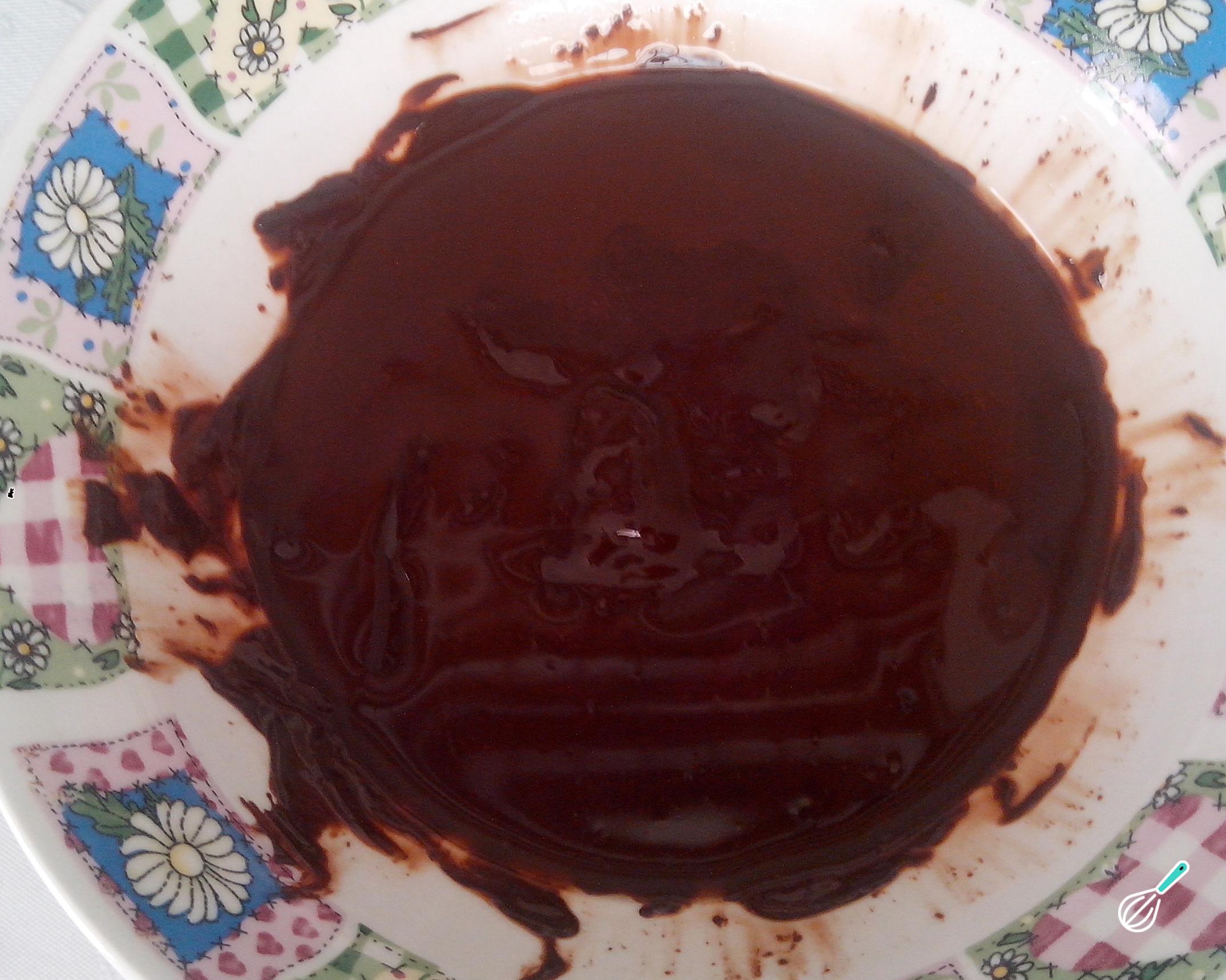 À partepique o chocolate, junte a manteiga e derreta no microondas, de 30 em 30 segundos em potência máxima, ou em banho maria, até ficar bem cremoso.