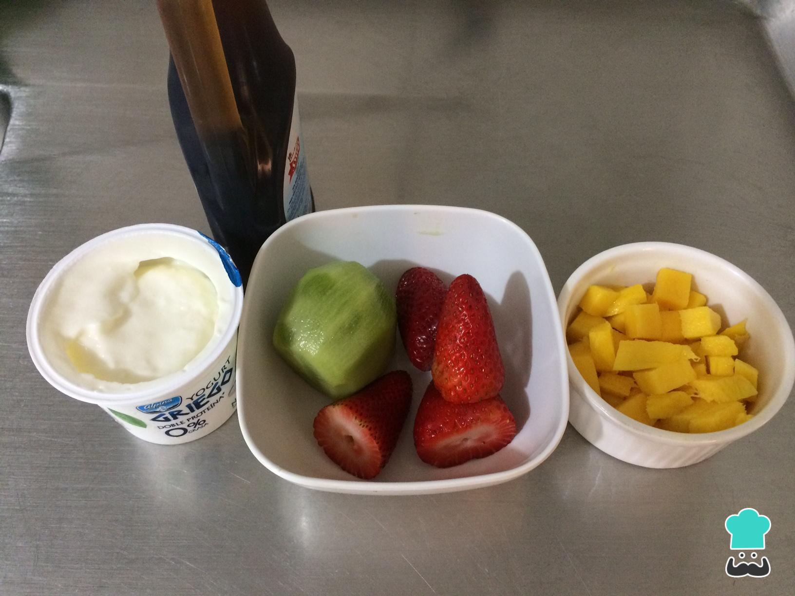 Antes de fazer esta receita, o primeiro passo é reunir todos os ingredientes para fazer o seu Sorvete de iogurte.