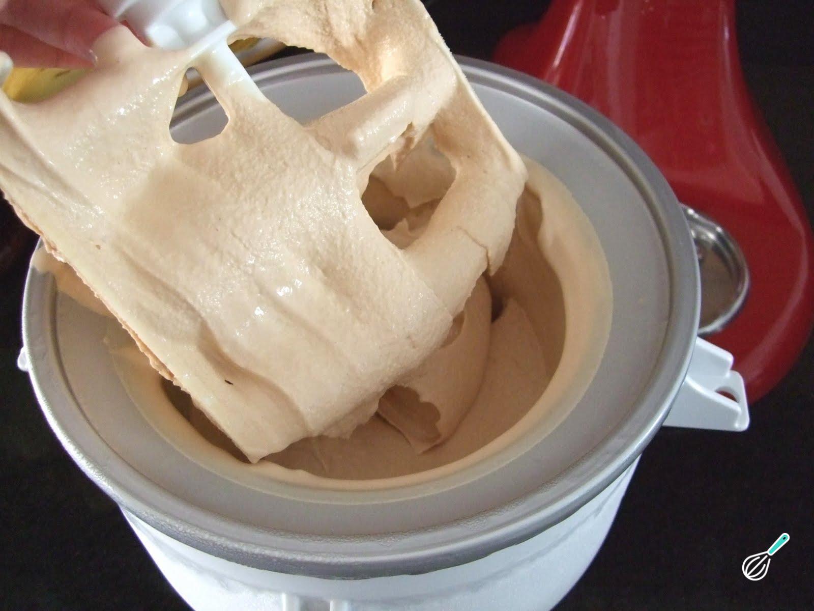 Coloque a mistura na geladeira para que esfrie. Depois de fria, despeje a mistura na sorveteira e deixe para fazer sorvete. Se você não tem sorveteira, coloque a mistura em um recipiente hermético e reserve no congelador,45 minutos depois, retire e mexa o sorvete. Coloque de volta no congelador e repita este processo por mais 3 vezes.