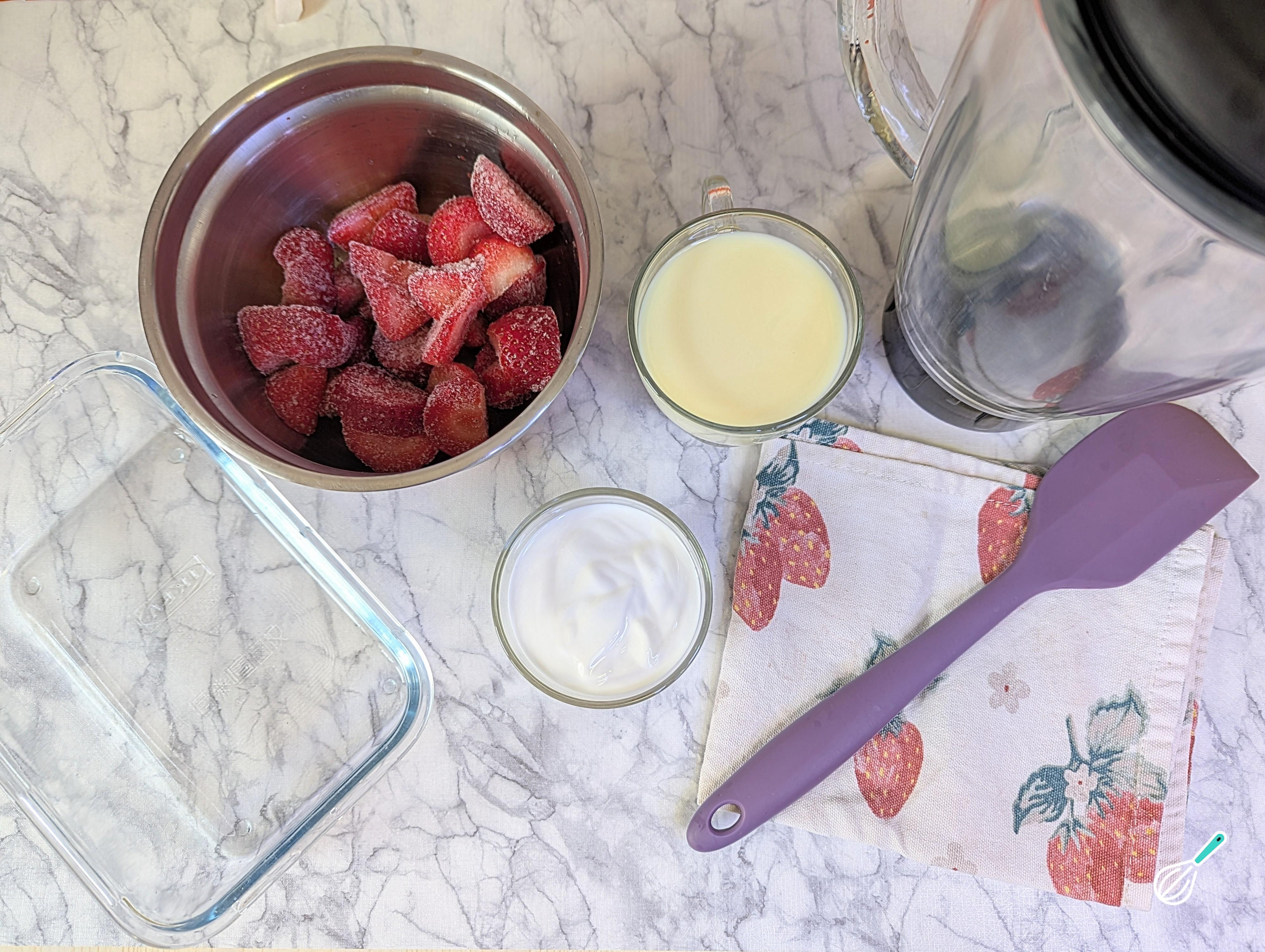Comece separando os ingredientes e os utensílios necessários para preparar o sorvete.