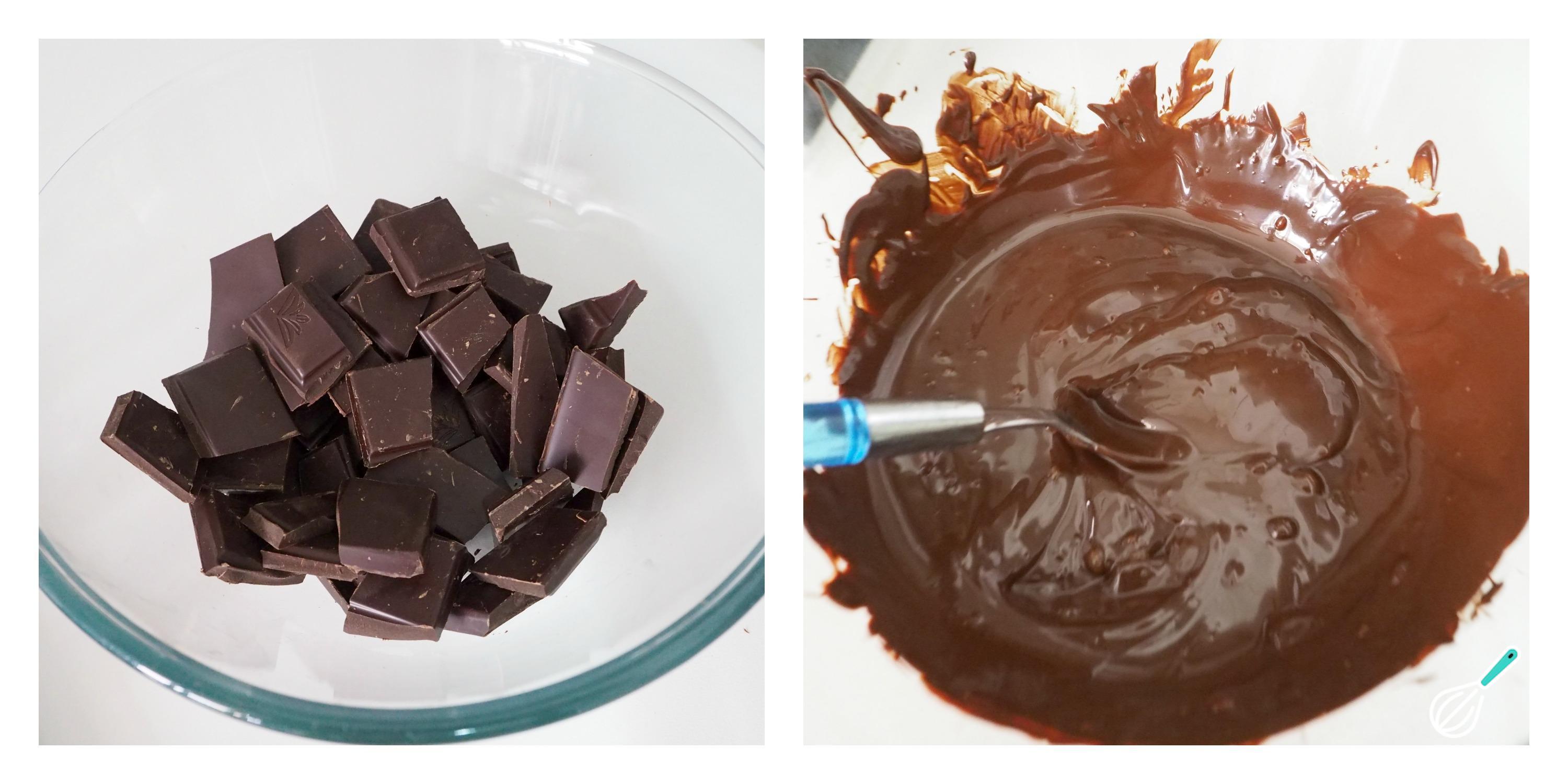 Para fazer esta receita de Viennetta em casa comece por partir o chocolate em pedaços e derreter no microondas.