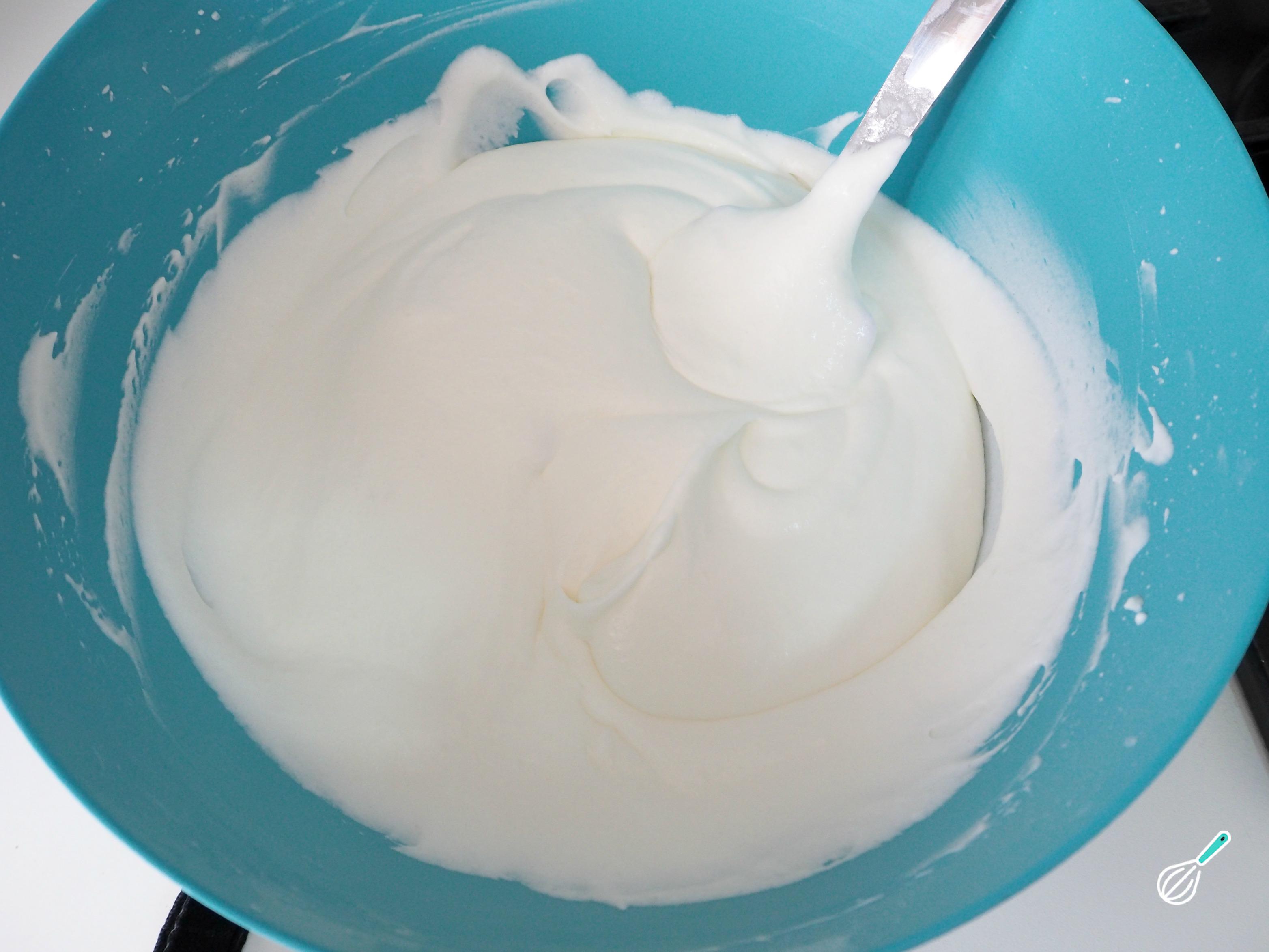 Para fazer o sorvete de baunilha caseiro bata as claras em neve, adicione metade do açúcar peneirado e continue batendo até virar um merengue bem cremoso e brilhante.