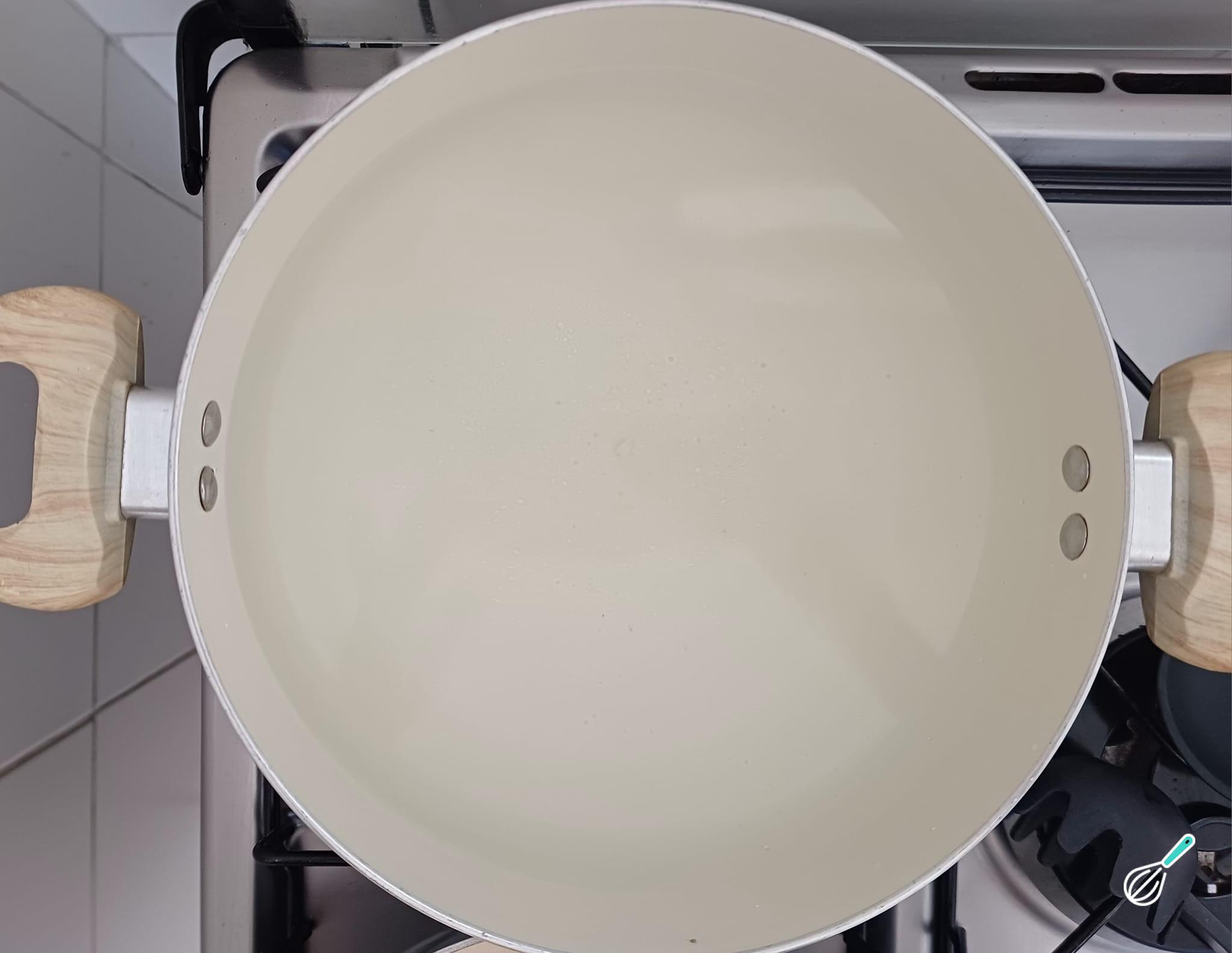Numa panela alta coloque água suficiente para o cozimento da massa. Ligue o fogo e aguarde até a água ferver. Após isso, adicione sal na água.