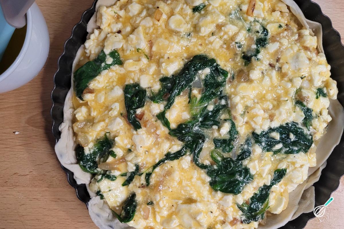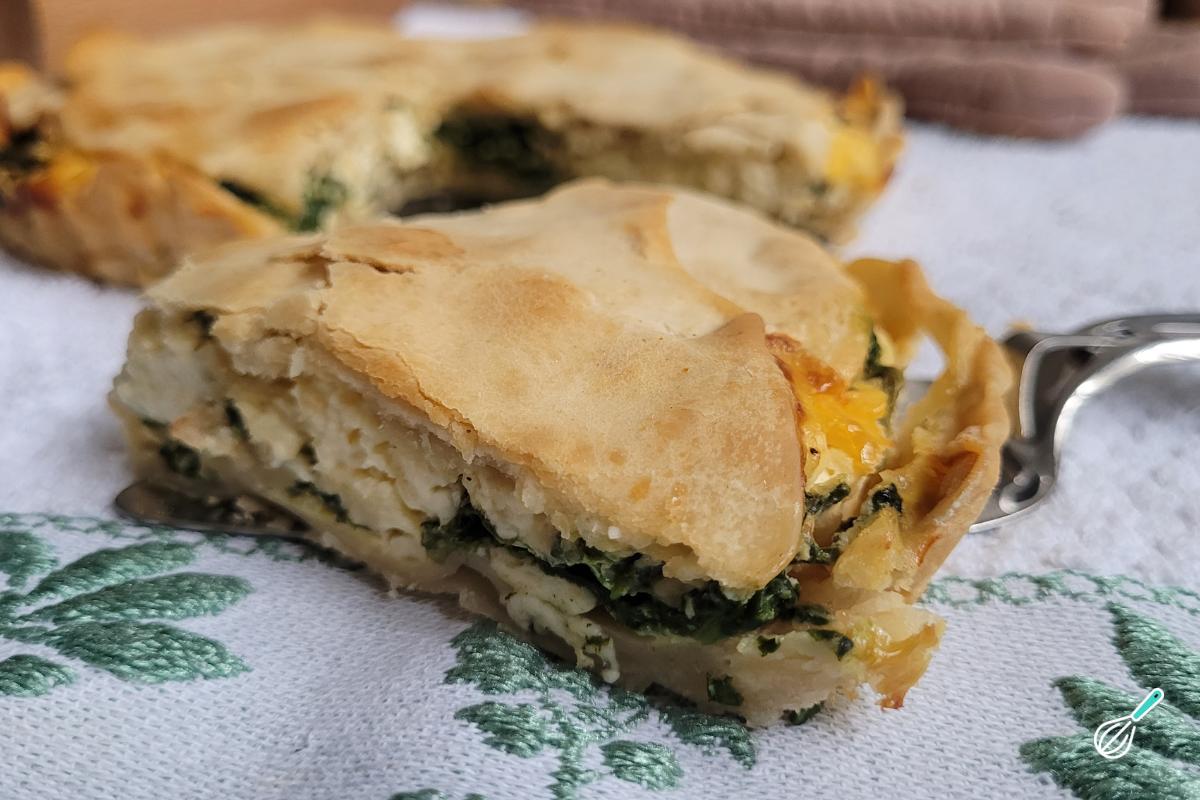 Spanakopita é uma torta grega com camadas de massa filo, uma massa de folhas muito fininhas, quase transparentes como folhas de papel, intercaladas com manteiga derretida ou azeite e recheio de feta e espinafre. A manteiga ou azeite entre as finas camadas gera um efeito folheado e crocante.