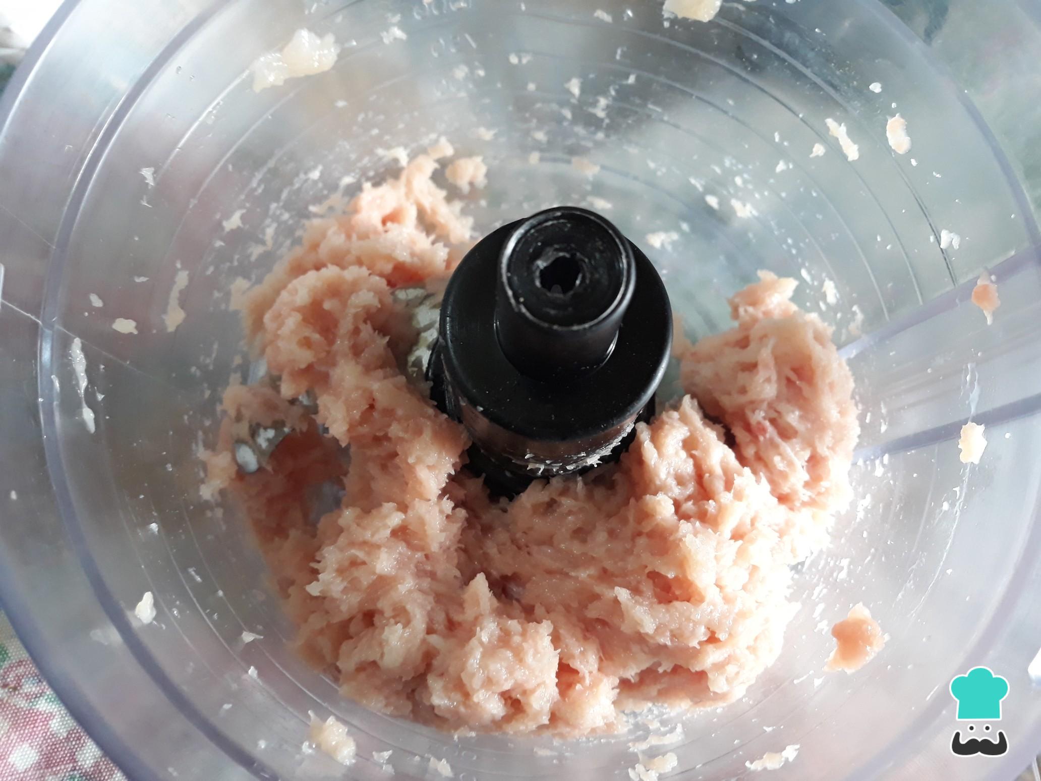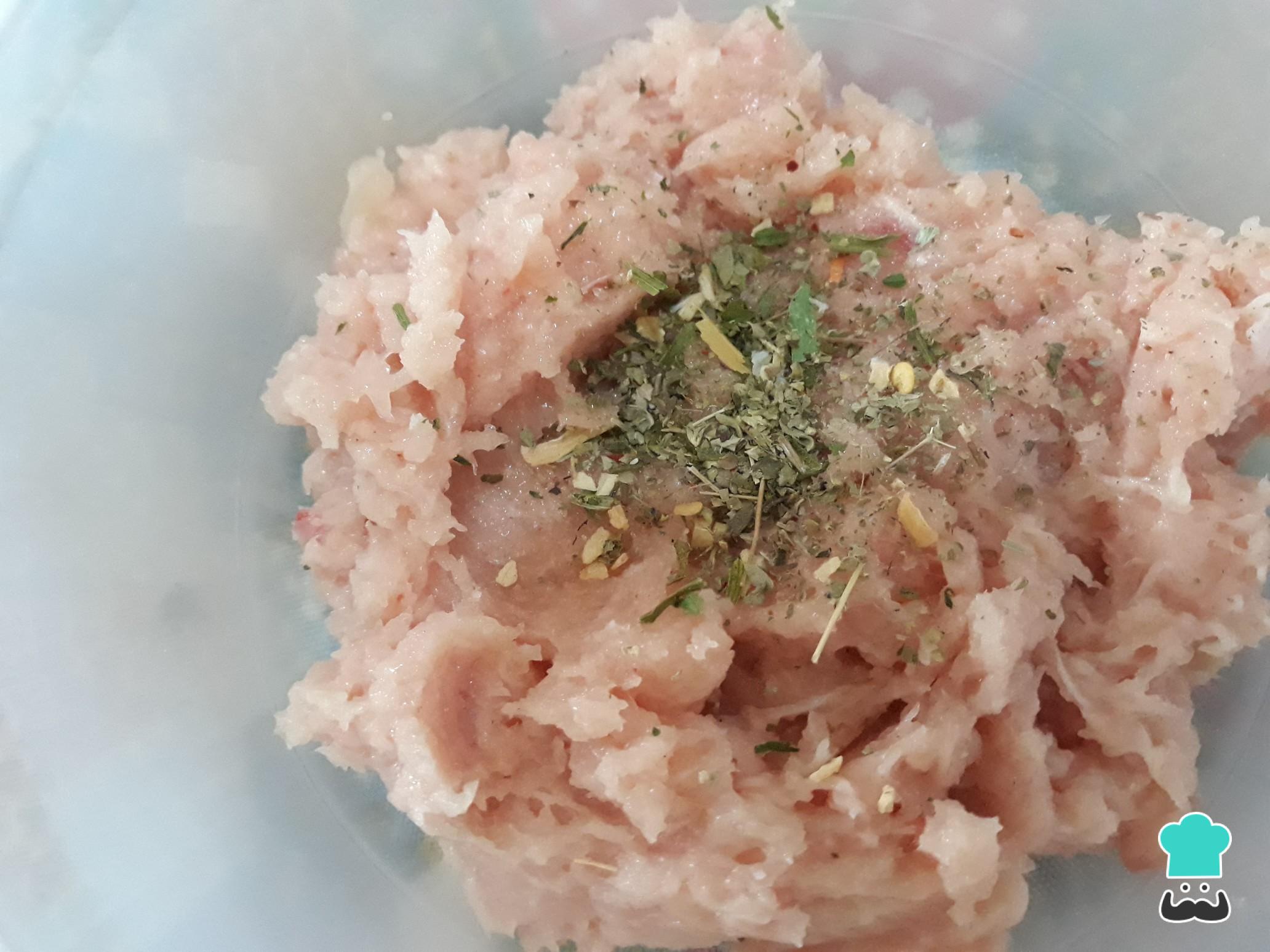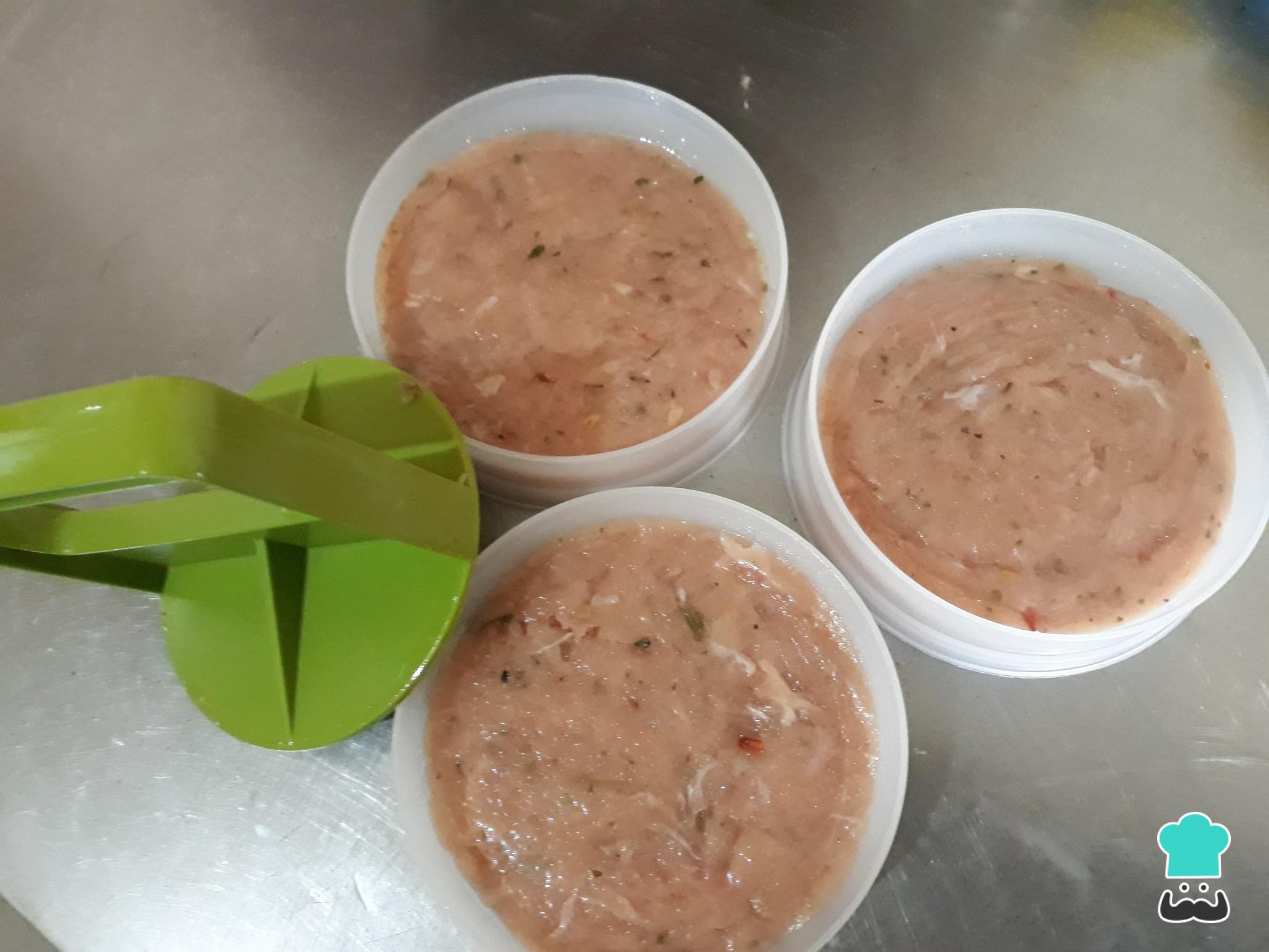 O passo seguinte desta receita de steak de frango caseiro é modelar a carne, de preferência usando modeladores de hambúrguer.