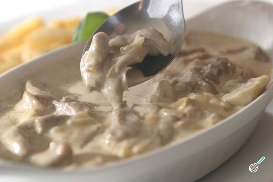 Já aqui deixei várias receitas de peito de frango, devido a ser um ingrediente muito prático e muito acessível, sendo ainda um ingrediente que combina com a maioria dos sabores. O frango é das carnes mais usadas, por todos estes motivos referenciados e também por ser uma carne magra. Nesta ocasião trago para você uma receita de strognoff de frango tradicional. Esta é uma receita muito simples e muito saborosa para preparar em 30 minutos. A mostarda e o molho inglês dão a este frango um toque especial. Existem várias receitas de strognoff de frango, espero que goste da minha receita. Experimente, seguindo todo o passo a passo do TudoReceitas.