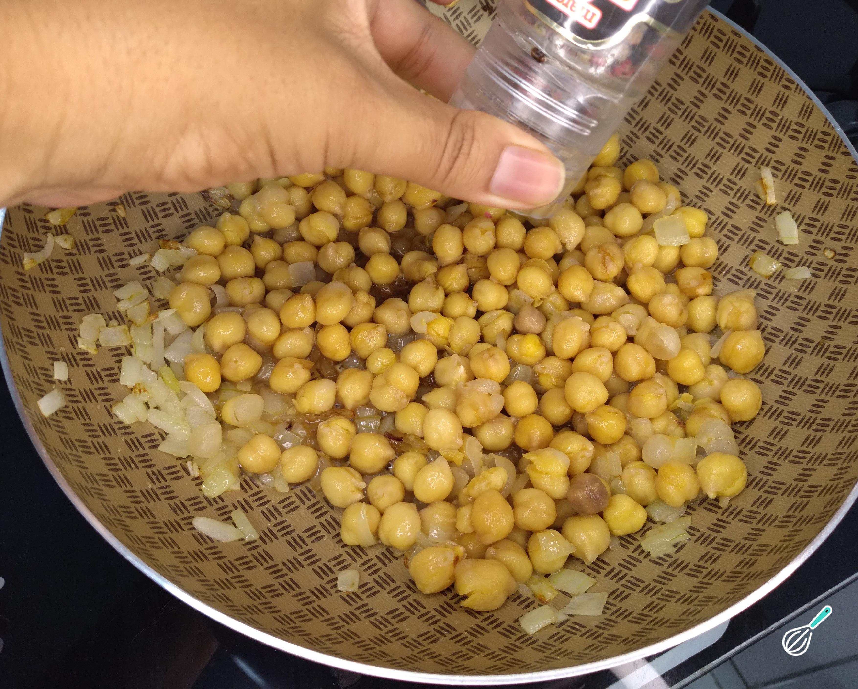 Em seguida, acrescente o grão de bico e os temperos.