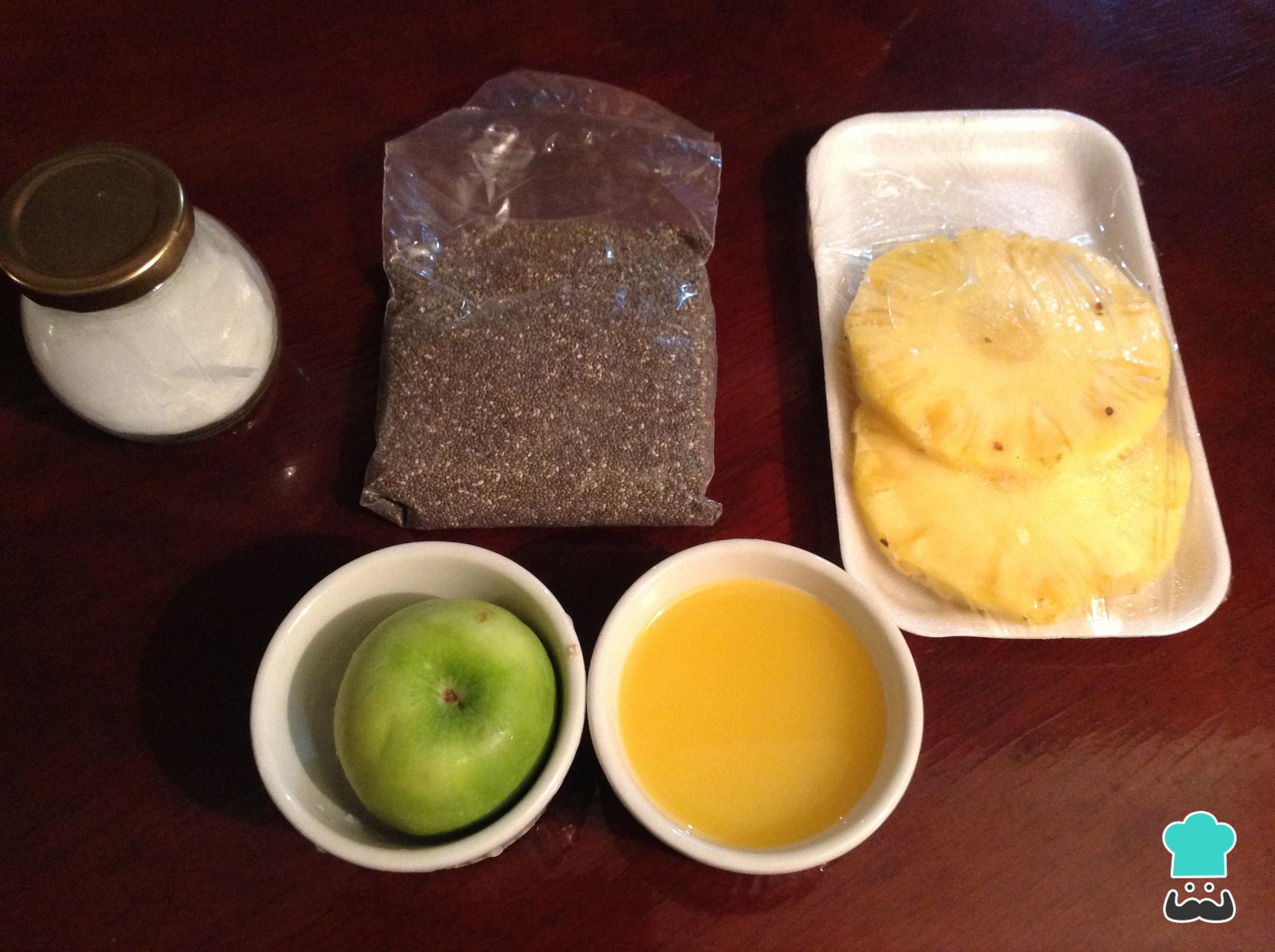 O primeiro passo para preparar este suco de abacaxi e sementes de chia é reunir os ingredientes necessários.