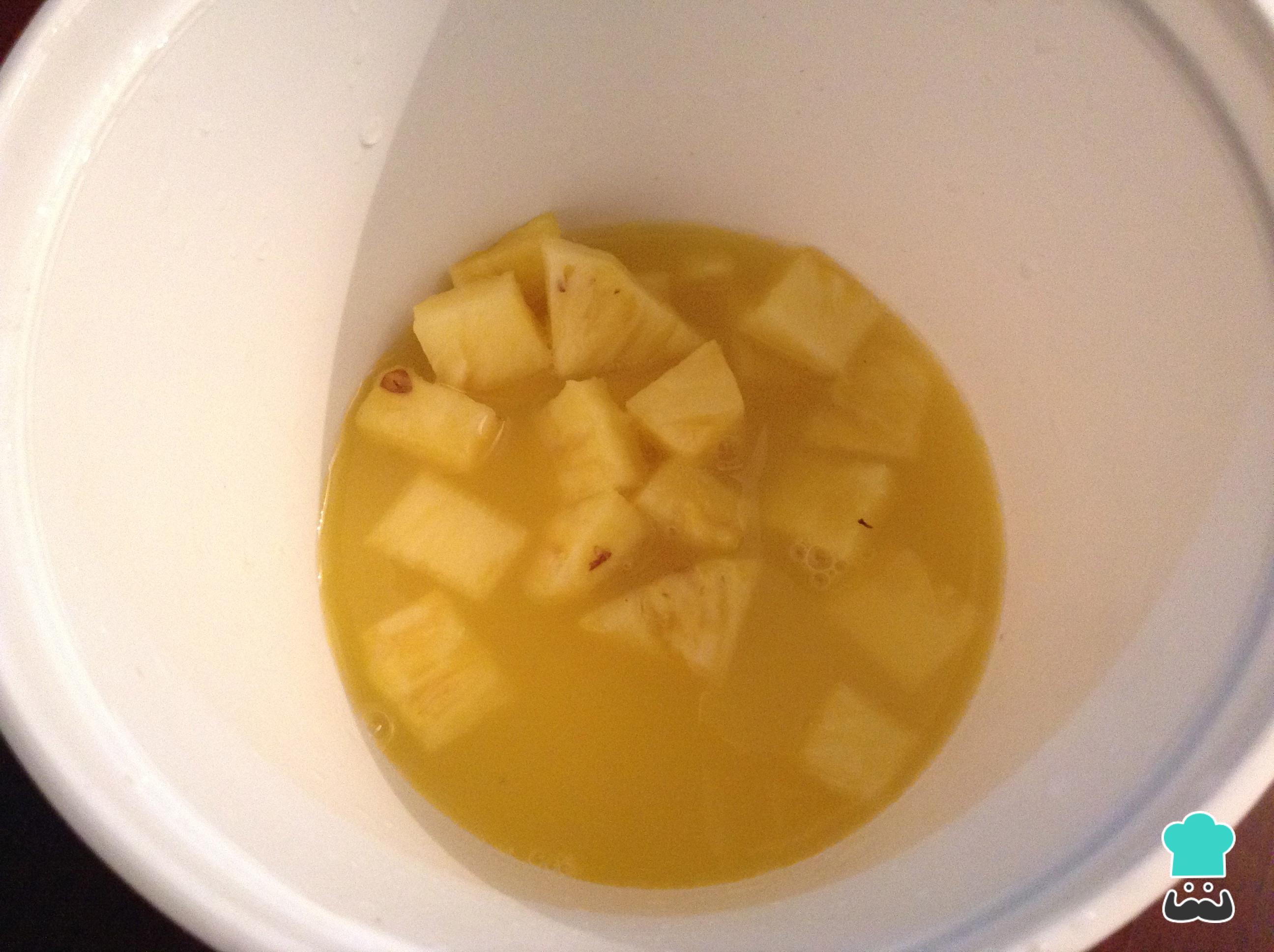 Finalmente, quando as frutas estiverem bem batidas, se quiser adoce com um pouco de stevia ou outro adoçante natural. No entanto lembre-se que o abacaxi já é uma fruta doce.
