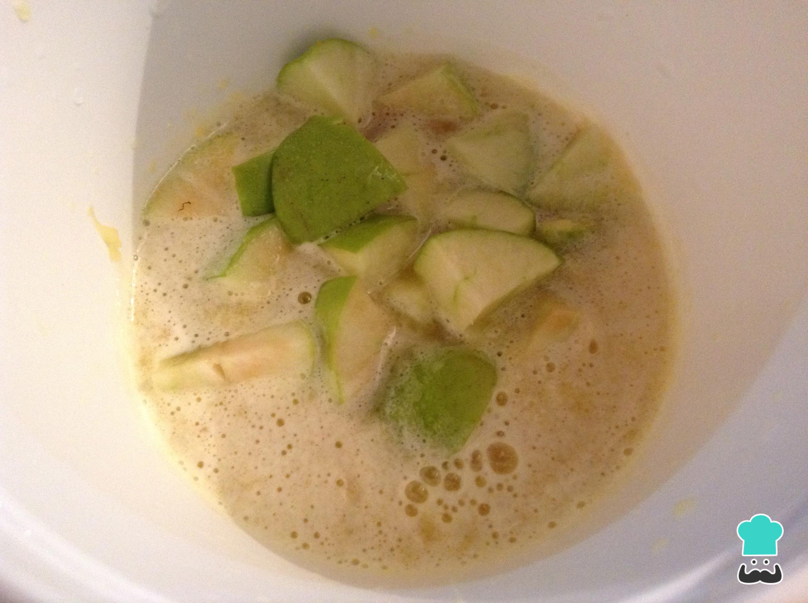 Acrescente as maçãs lavadas e cortadas em cubos, sem tirar a pele. Bata muito bem, para continuar preparando este suco depurativo.