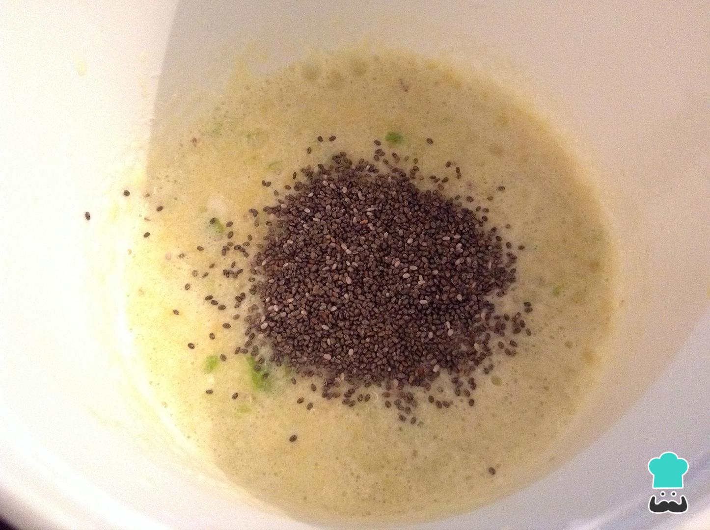 Finalmente acrescente as sementes de chia, que contribuem para uma sensação de saciedade, além de serem ricas em vários nutrientes.