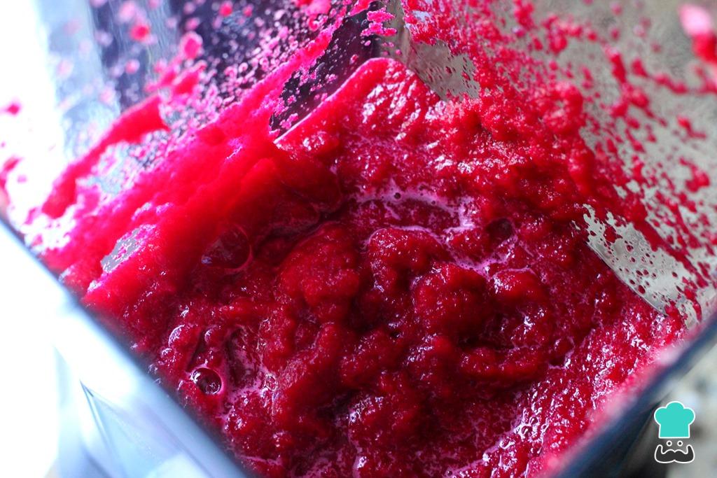 Coloque a beterraba no copo do liquidificador ou do mixer, e acrescente os restantes ingredientes. Bata tudo muito bem por 2-3 minutos e, se quiser, coe o suco para eliminar o bagaço e as sementinhas das frutas.