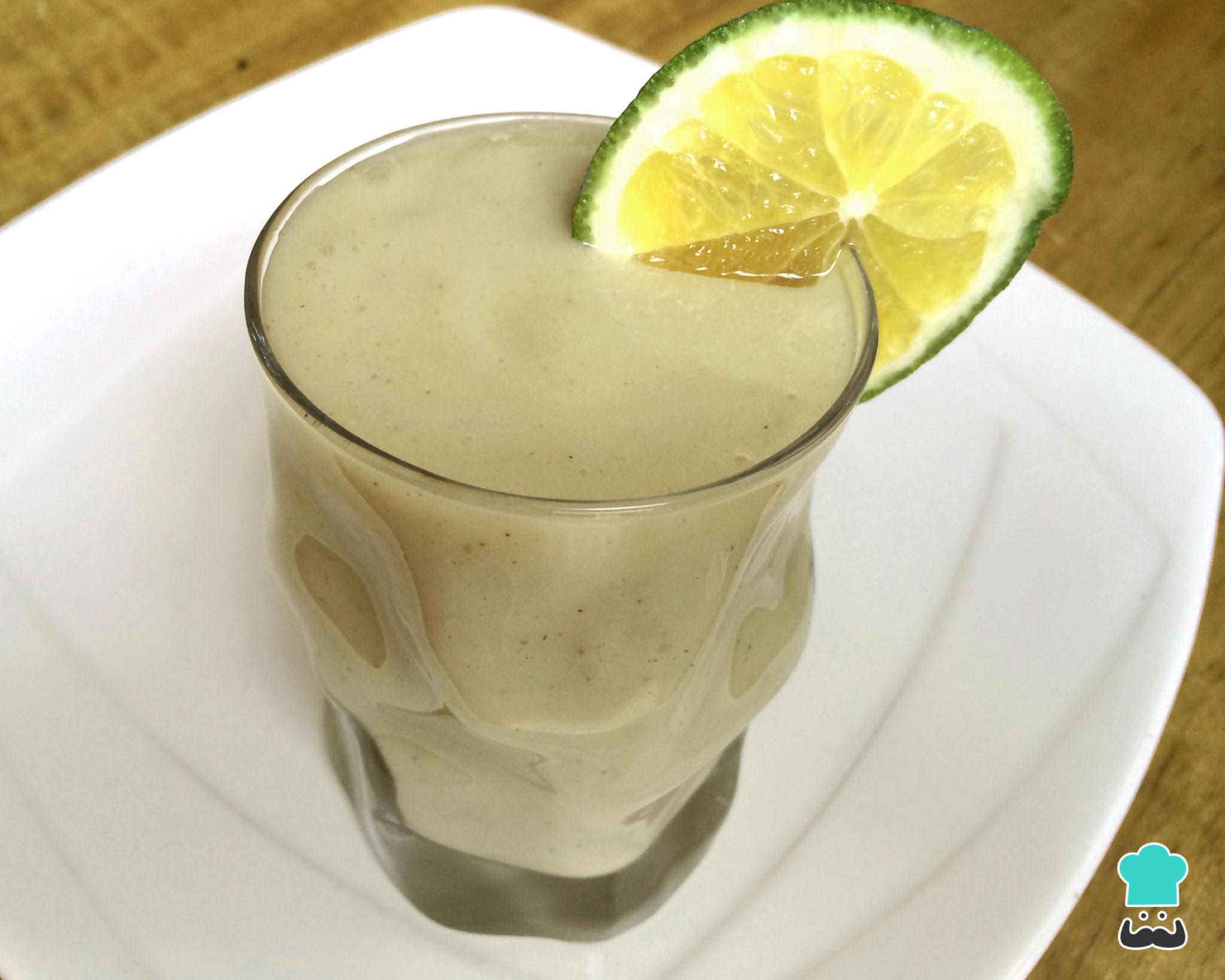 Bata o inhame com a água e o suco de limão no liquidificador por 2-3 minutos. Acrescente a maçã e o gengibre e bata novamente, até triturar tudo muito bem.