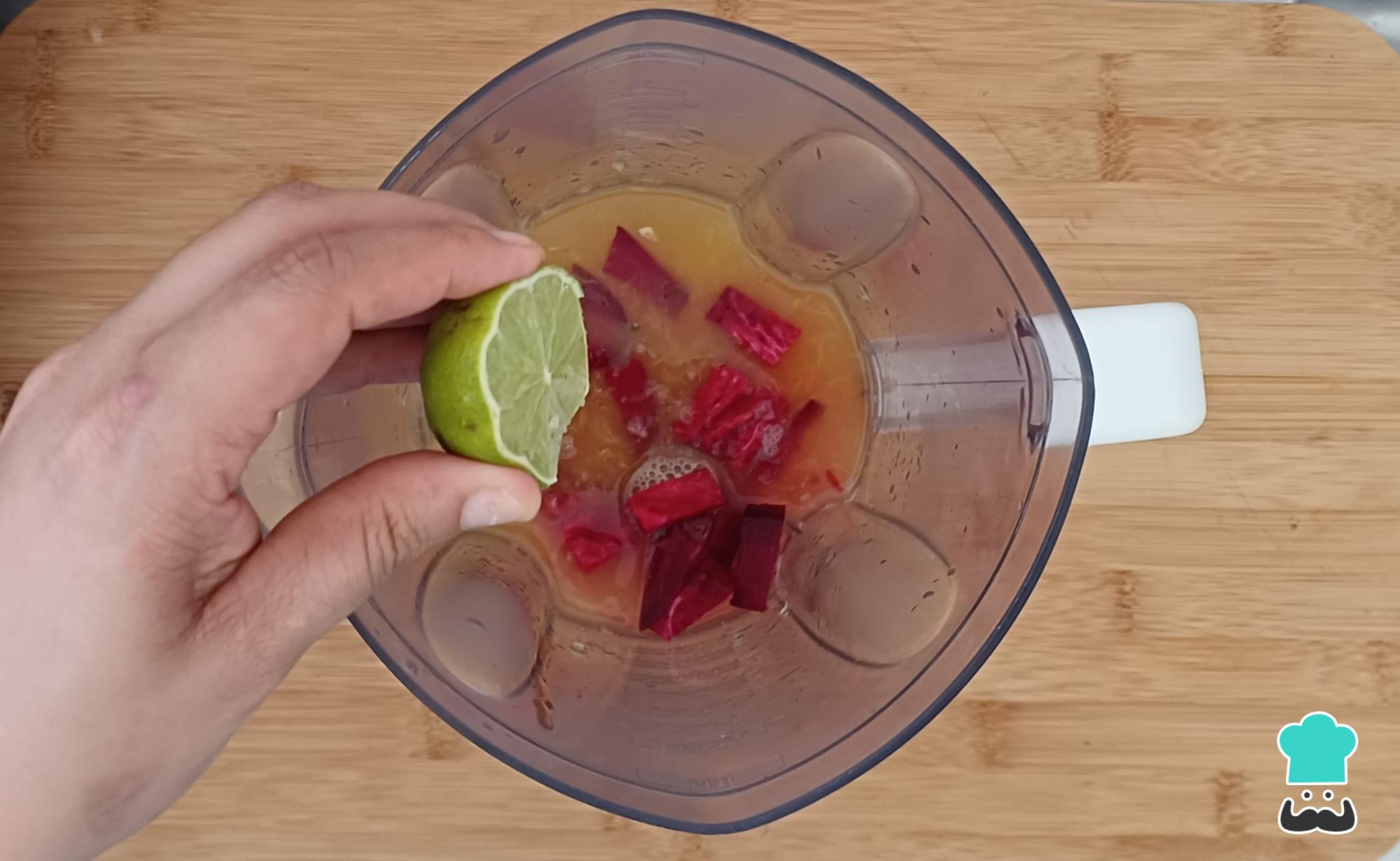 Coloque todos os ingredientes no liquidificador e por último, adicione gotinhas de limão.