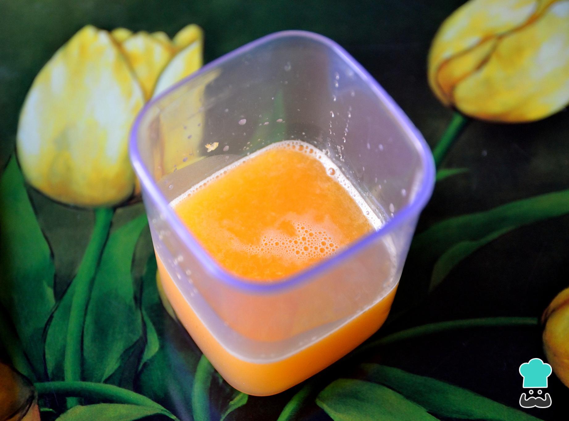Comece por extrair o suco das laranjas usando um espremedor ou máquina de sucos.