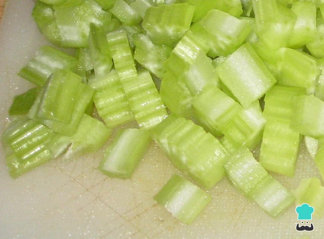 Corte os ramos de aipo em pedaços e coloque no liquidificador junto com suco de laranja e a rodela de gengibre. Bata muito bem até obter um suco o mais lisinho possível.