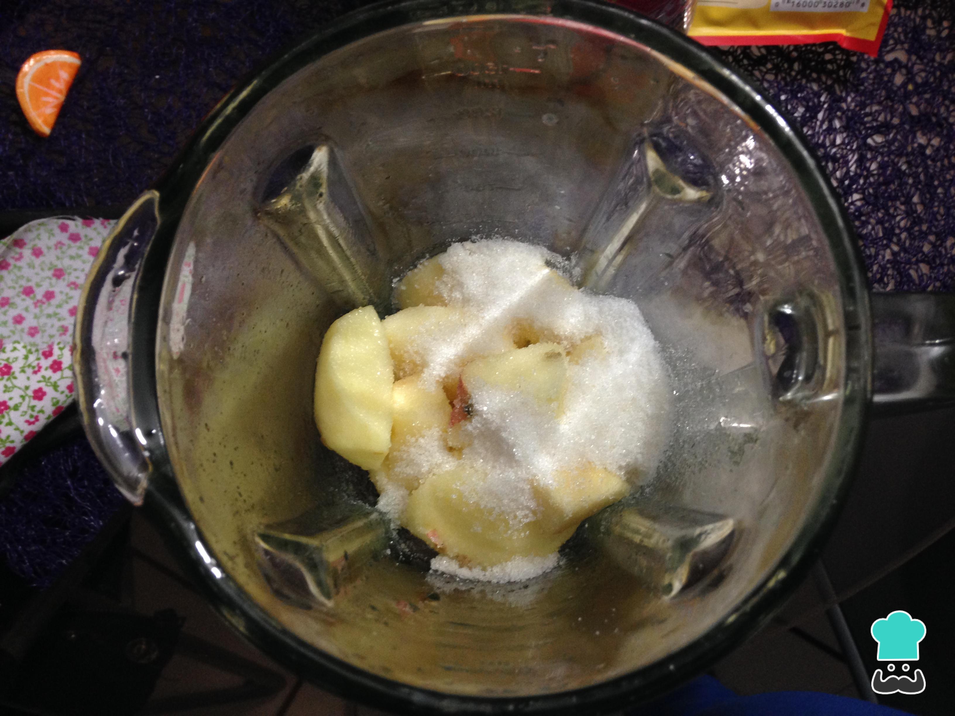 Coloque as maçãs na liquidificadora junto com o açúcar e o suco de limão. É nesse passo que você começa verdadeiramente preparando o suco de maçã delicioso.