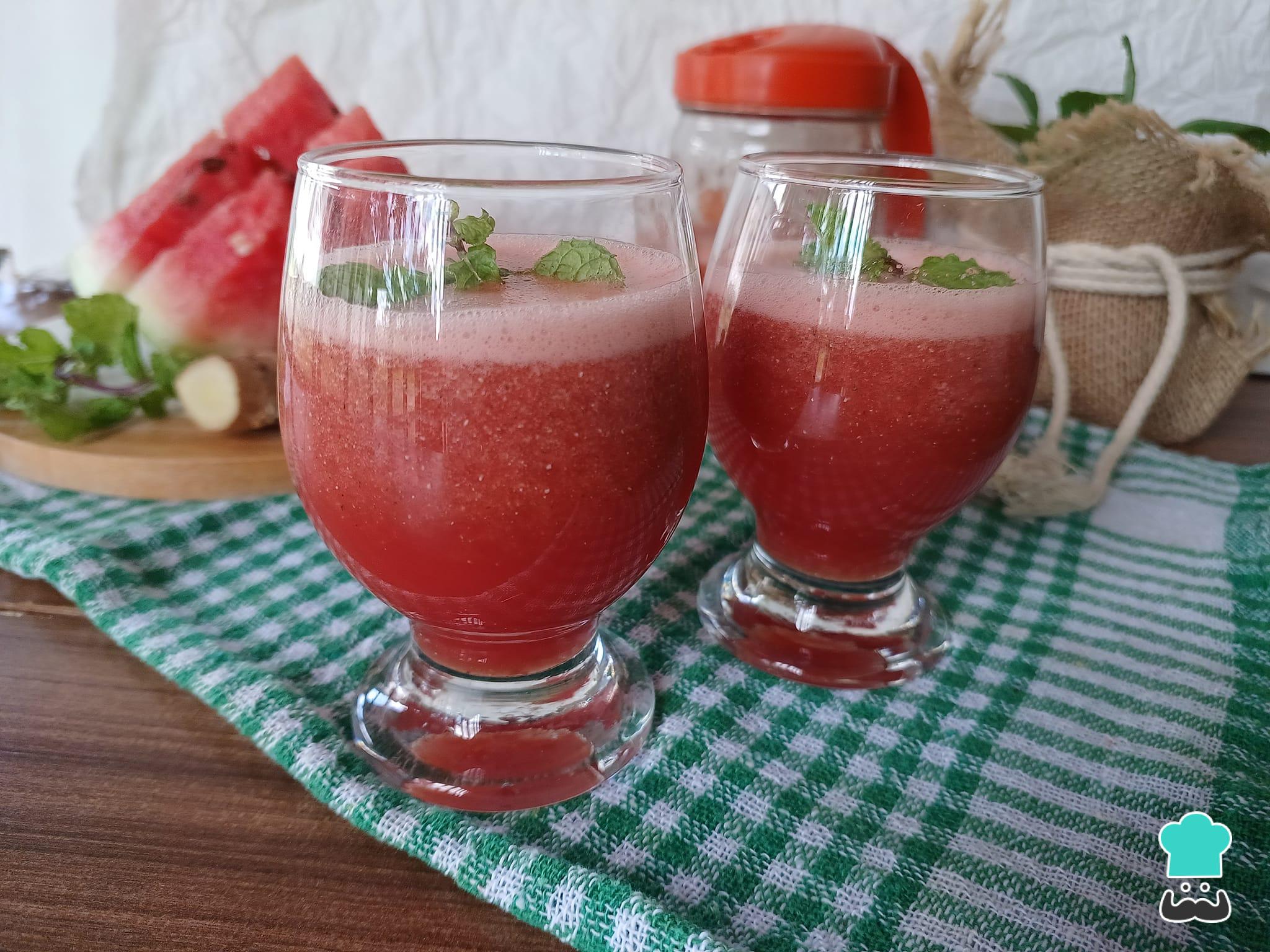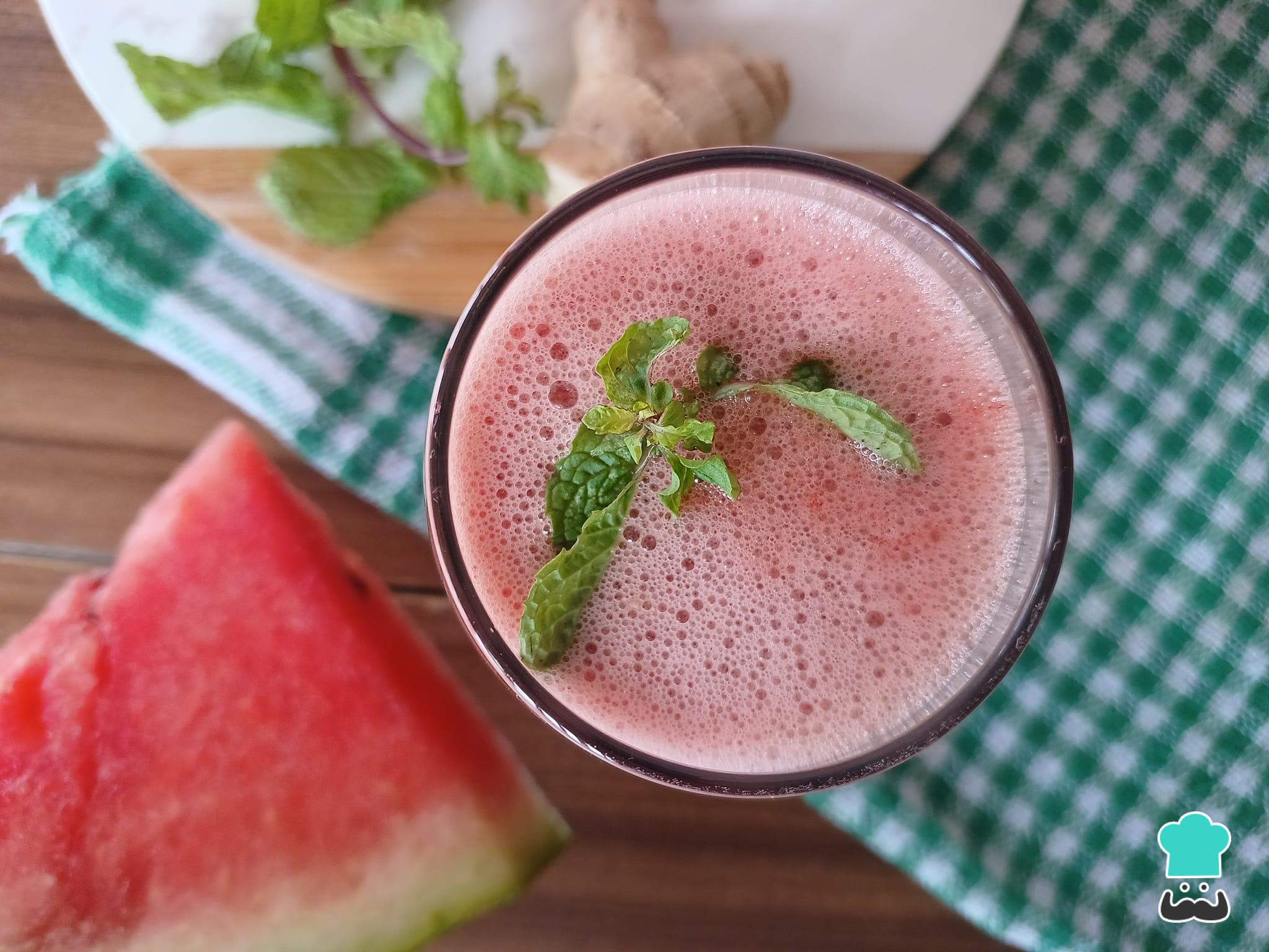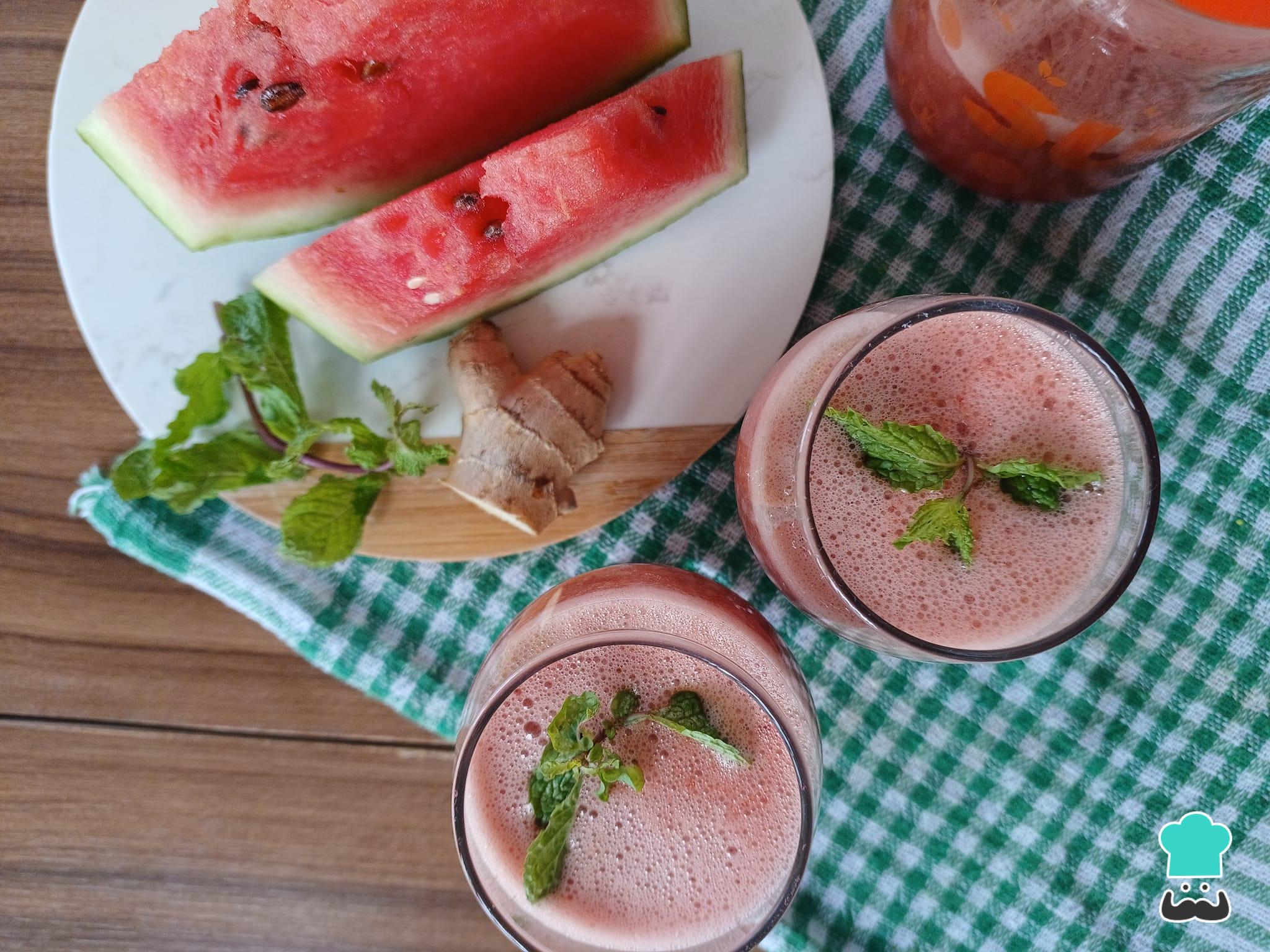 Seu suco de melancia com gengibre está pronto para ser consumido.