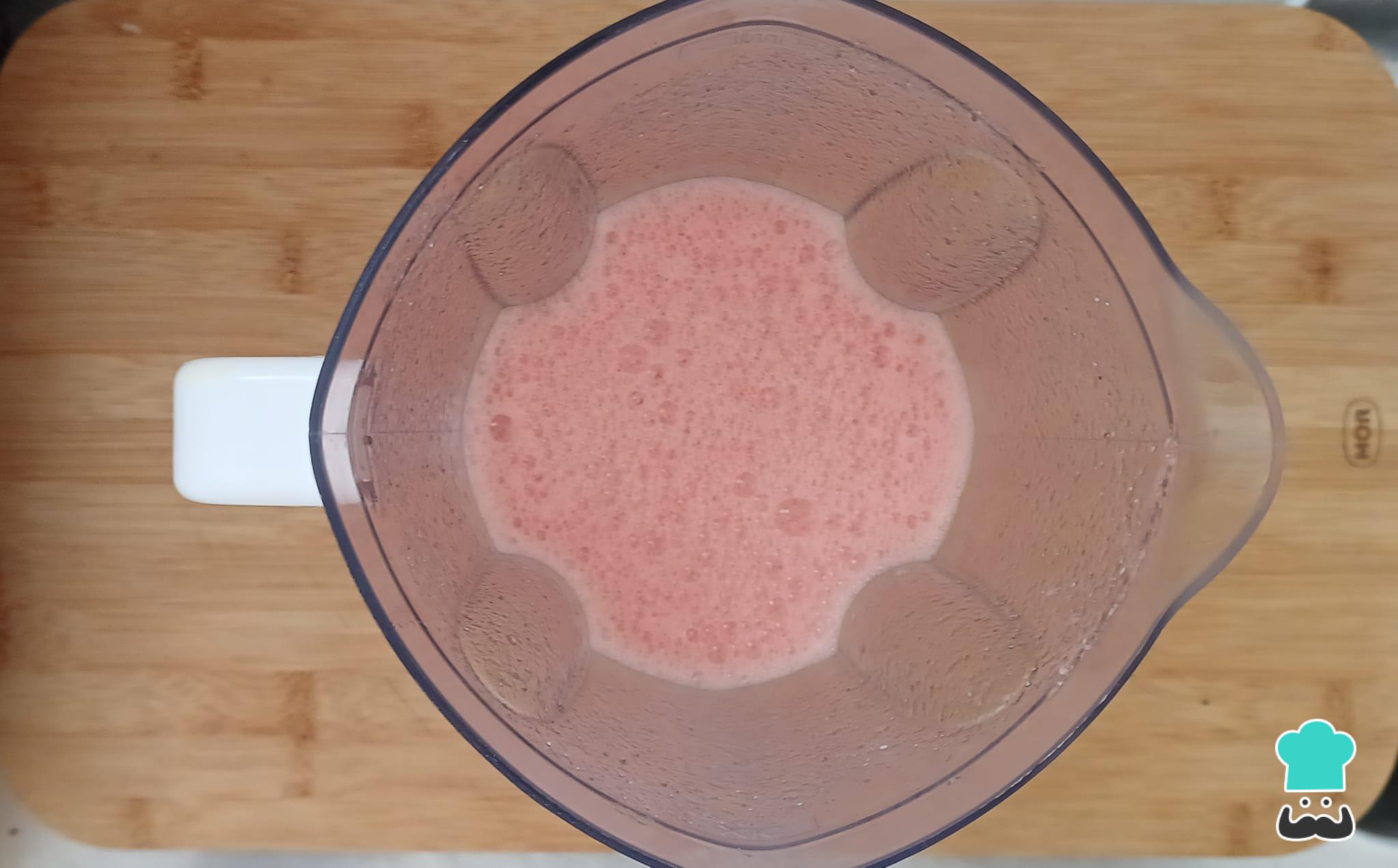 Bata bem todos os ingredientes até formar um suco homogêneo.