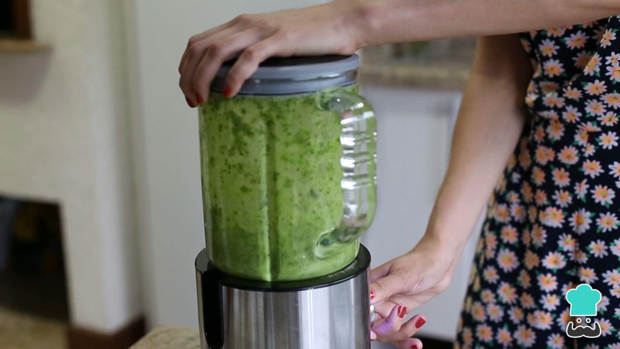 Coloque todos os ingredientes deste suco verde saudável no liquidificador, e bata por 2-3 minutos. Se vir que o suco está muito espesso, adicione um pouco de água gelada ou à temperatura ambiente.