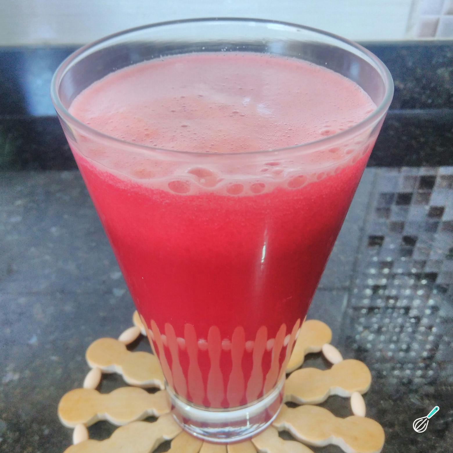 Após batido, coe e sirva. Está pronto seu delicioso remédio para anemia em forma de suco vitaminado!
