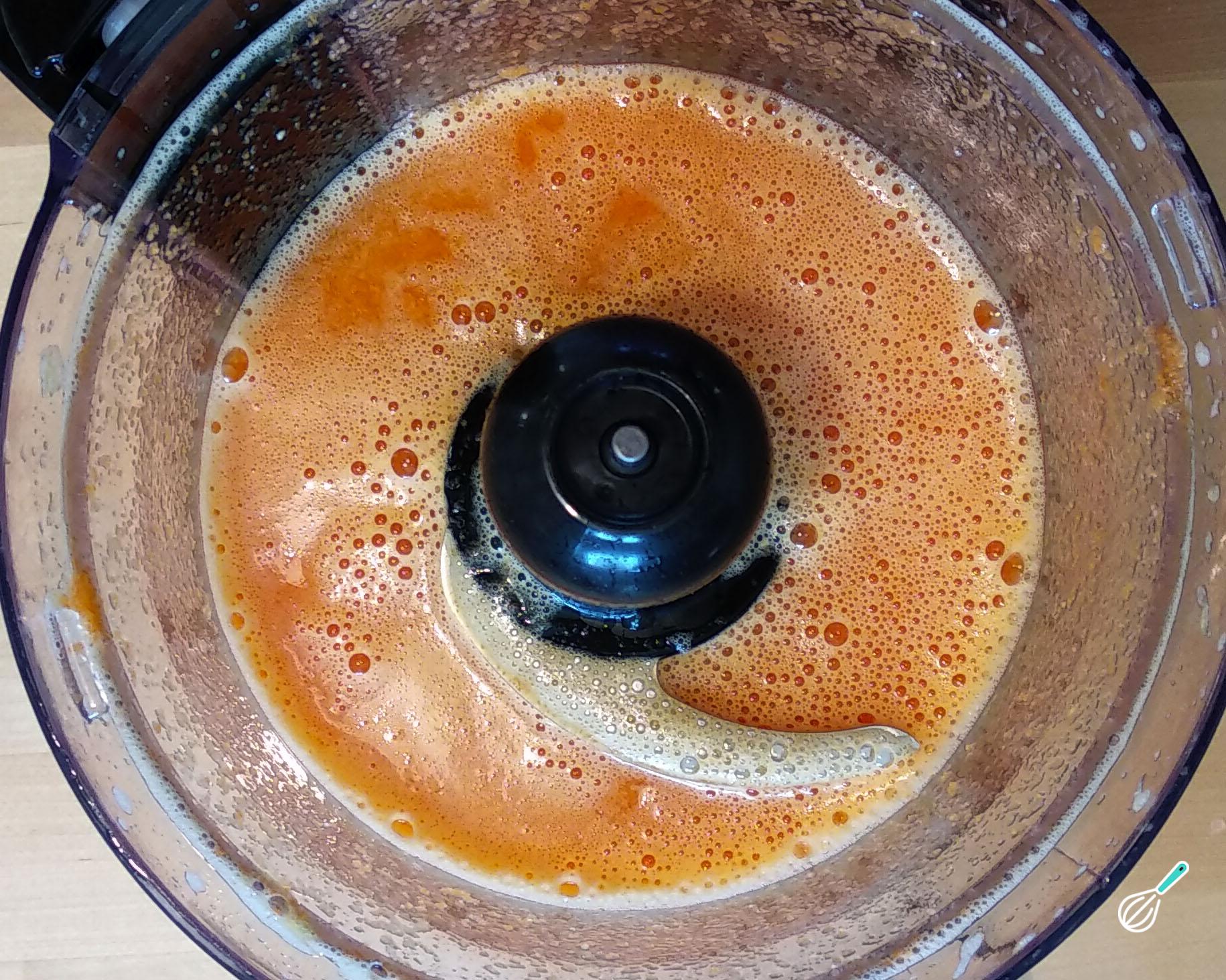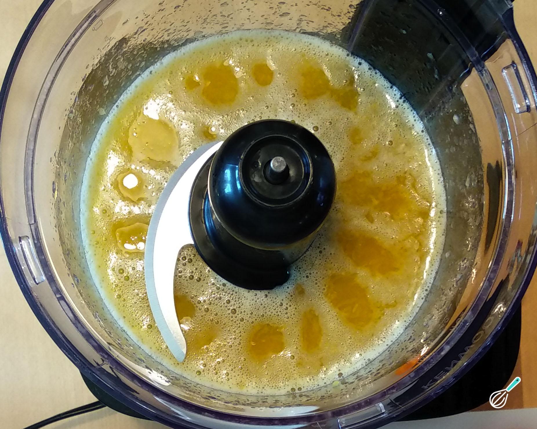 Comece por espremer o suco da laranja e colocar num liquidificador ou processador de alimentos. Escolha uma laranja bem sumarenta e doce, para não ser necessário adoçar esta bebida.