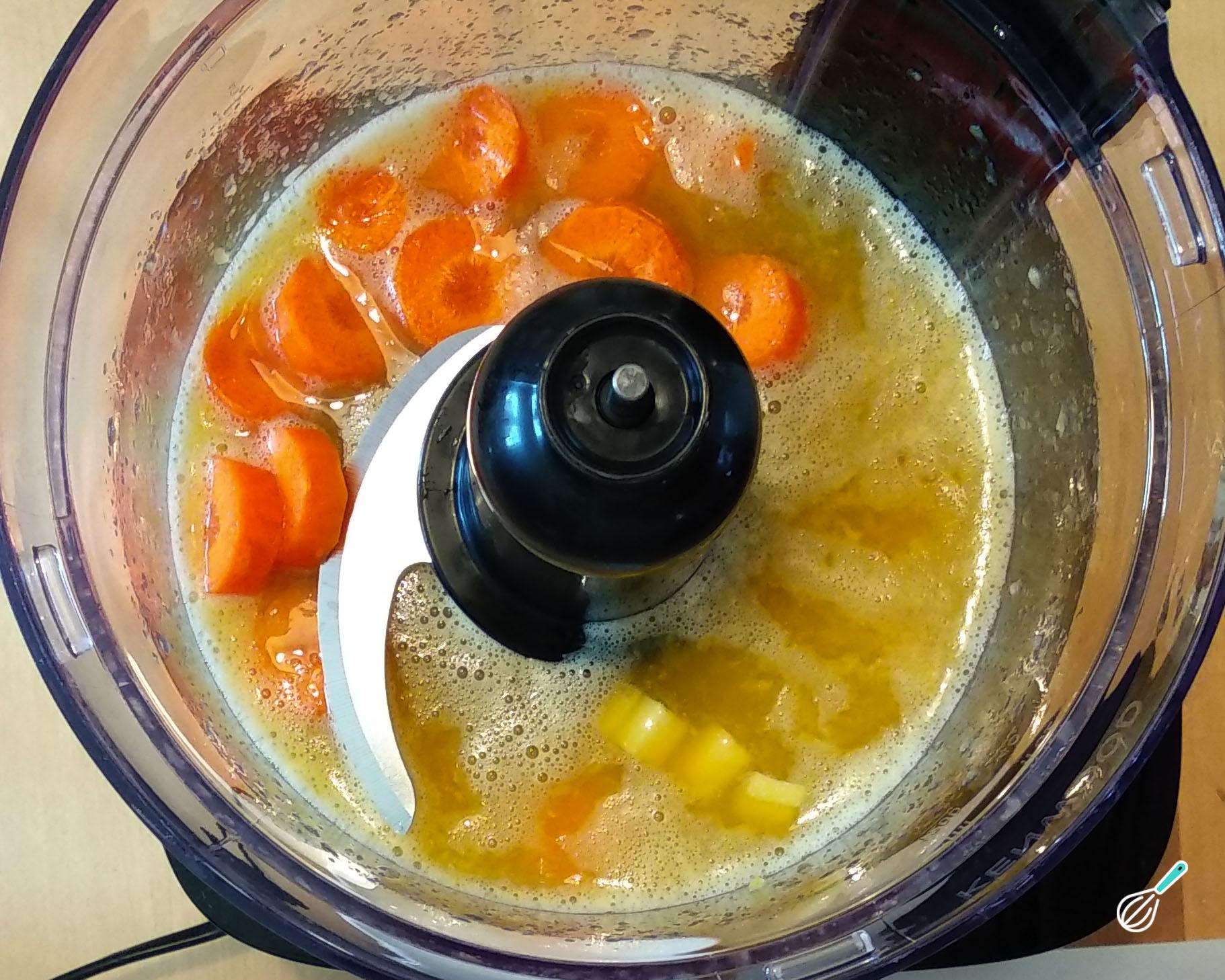 Em seguida adicione meia cenoura descascada e cortada em rodelas, assim como um pedaço pequeno de gengibre descascado.
