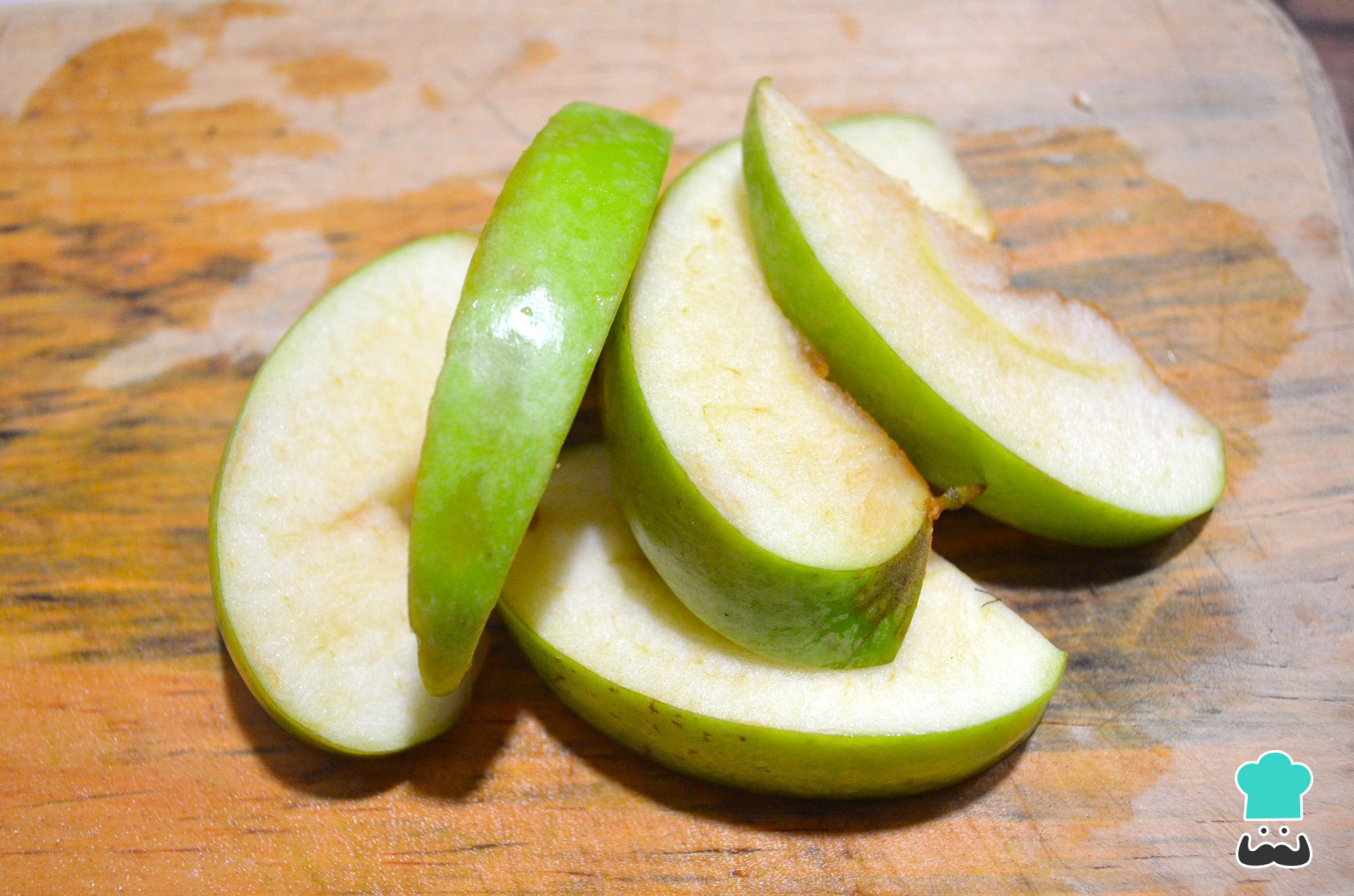 Corte a maçã em fatias finas sem retirar a casca, pois esta é uma grande fonte de fibra.